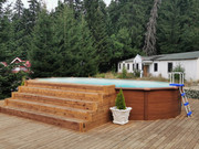 Малък двор, с масички и шезлонги около "басейна", на които се размазахме от лежане, шезлонгите са люлеещи. Тишина и пълен релакс. И приемат кучета срещу доплащане Simple Smile