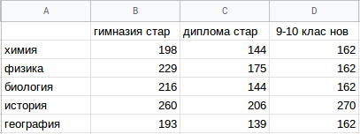 Разликата в първите две колони идва оттам, че основно образование се завършваше в осми ( а при ИИЧЕ и в девети) клас и част от часовете по предмета, изучаван в гимназията всъщност влизаха в свидетелството за основно образование.