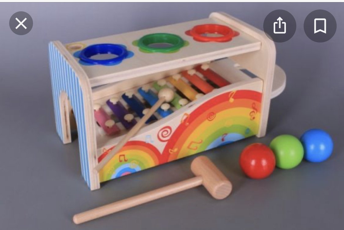 Аз поръчах от една жена от Facebook тази играчка. Днес сутринта я взех. Игра си супер много време с топчетата и чукчето. Ксилофона се вади и може да се свири и на него. Т.е играчка 2 в 1. Ще видим докога ще се задържи инетереса, но днес беше много щастлива.