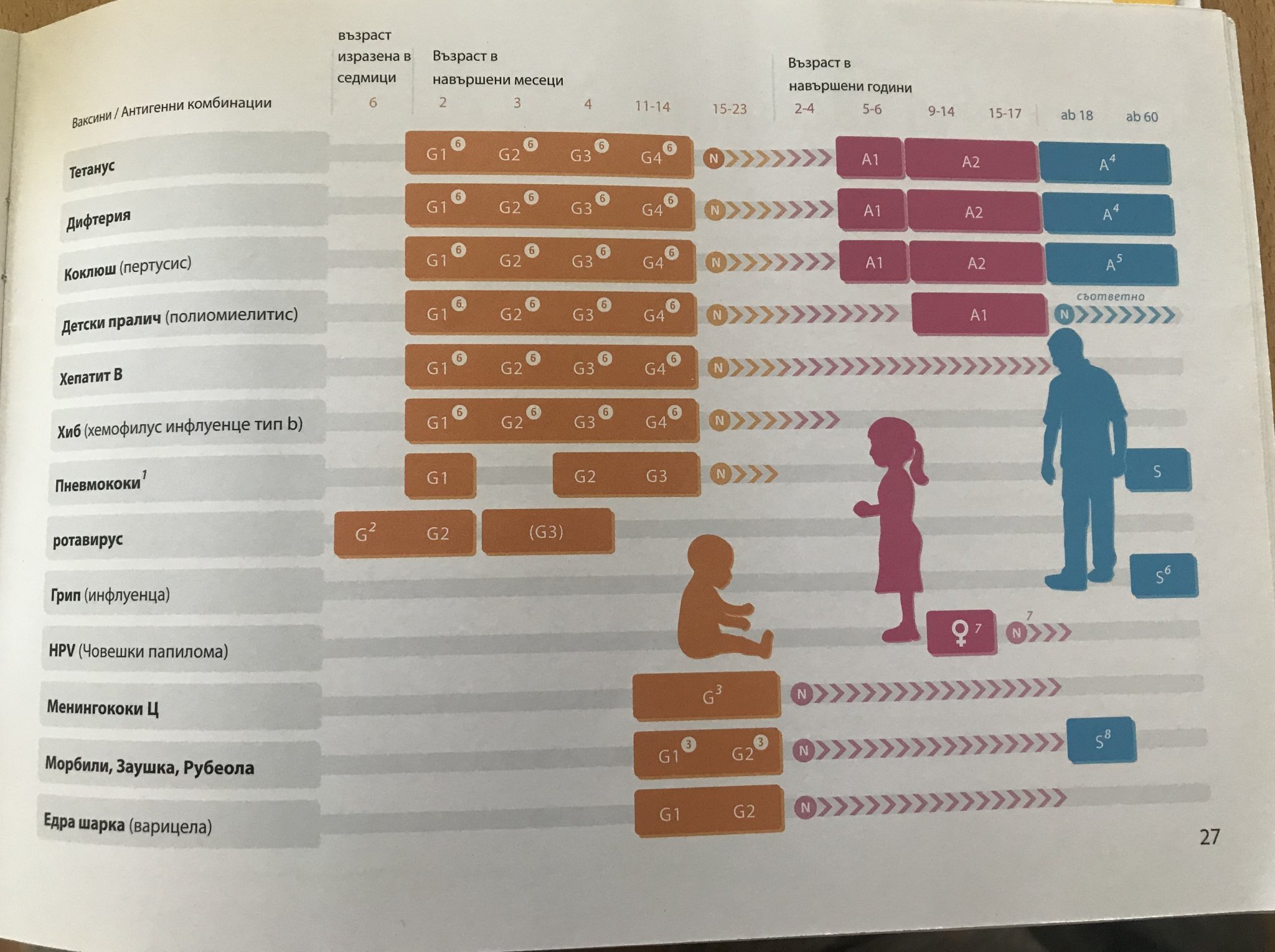 На 12 месеца мина и сега следва реваксинация на 18 месеца за морбили, заушка, рубеола и варицела. Сега променят закона и ако детето няма пълния набор ваксини, няма да може да се запише на ясла и детска градина. До сега частните вземаха не имунизирани, но вече не.