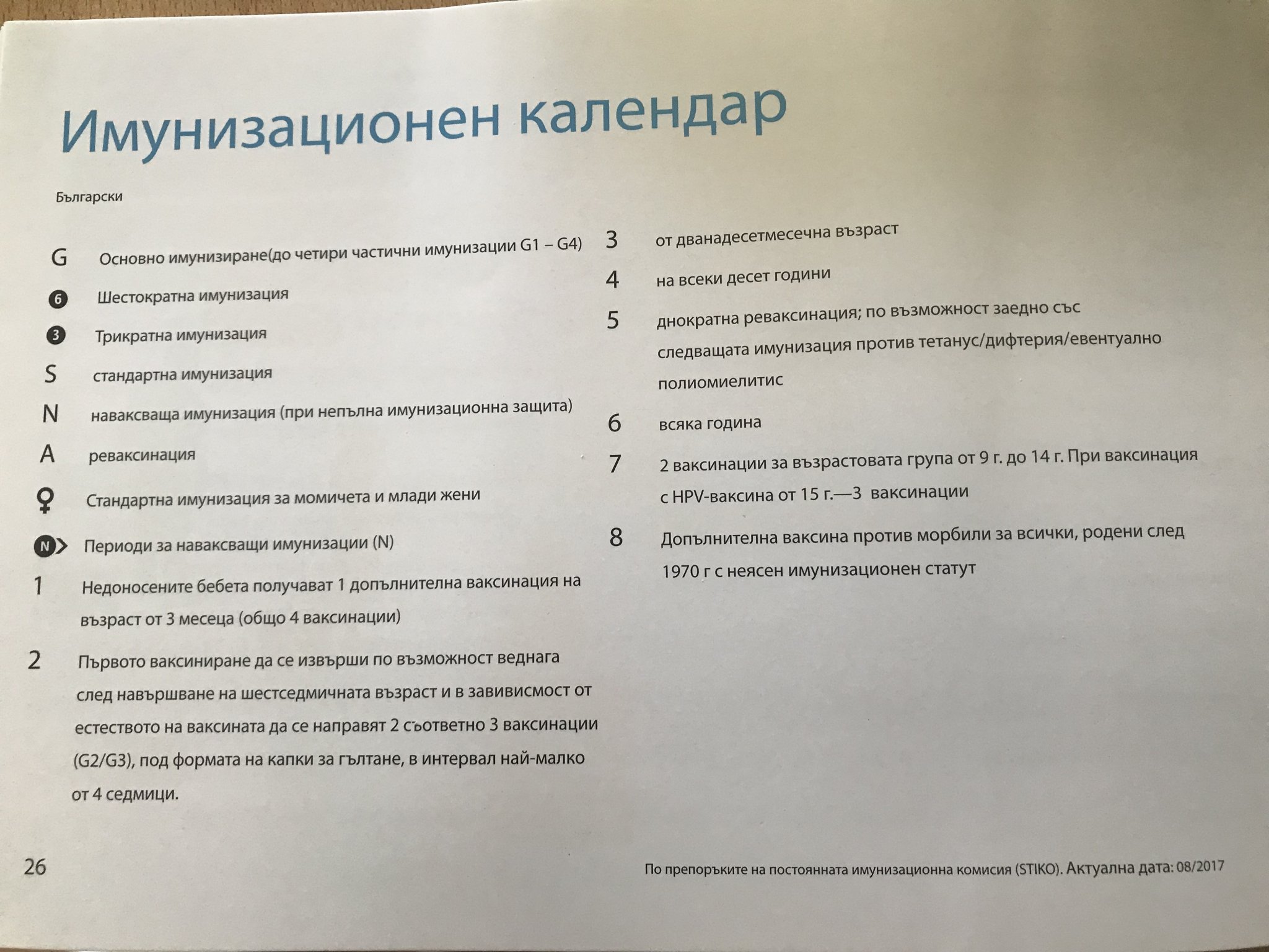 П.С. Прилагам снимки на немския имунизационен календар (с актуална дата 08/2017)