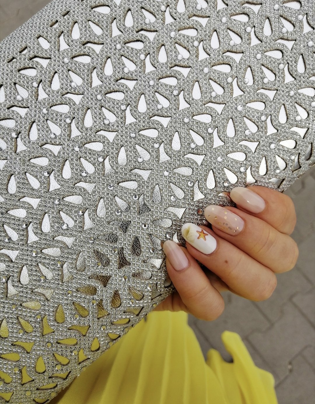 За да създадете дизайн с точки или мъниста върху ноктите си, можете да използвате специален инструмент за точкуване с малък връх, който се нагрява леко и се нанася лак в желания цвят. Освен това можете да опитате и с клечка за зъби, карфица или скосена четка за очна линия. Уверете се, че сте внимателни и практикувате техниката, за да постигнете желания ефект.