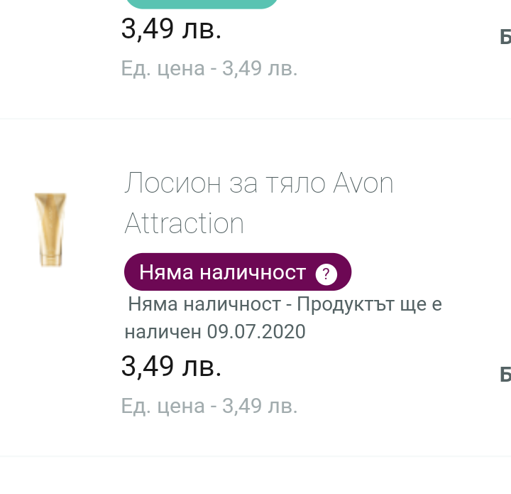 Недостиг, ще заредят количества на 09. Ако пуснеш поръчка процентът ти не пада, втория продукт ще го получиш на цената която трябва да е. Самият лосион ще получиш в следвща поръчка пак на цената постигната в тази поръчка. За повече детайли питай координаторката си.