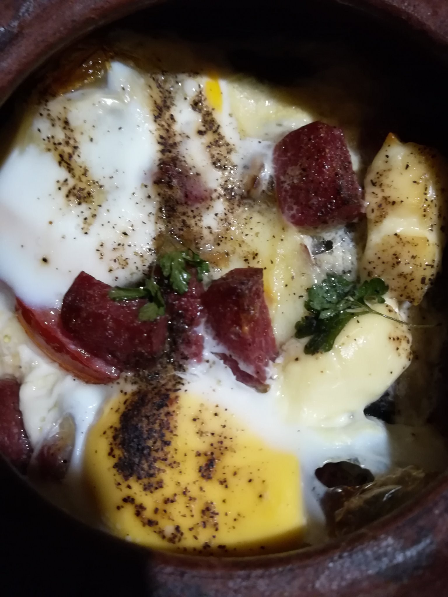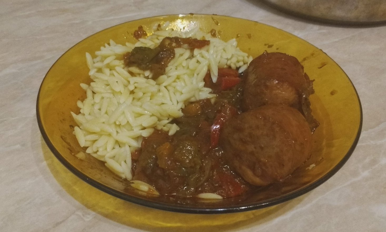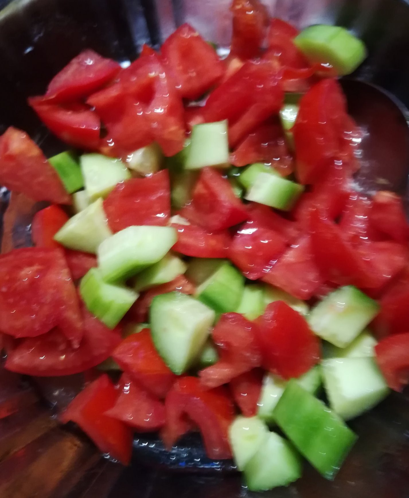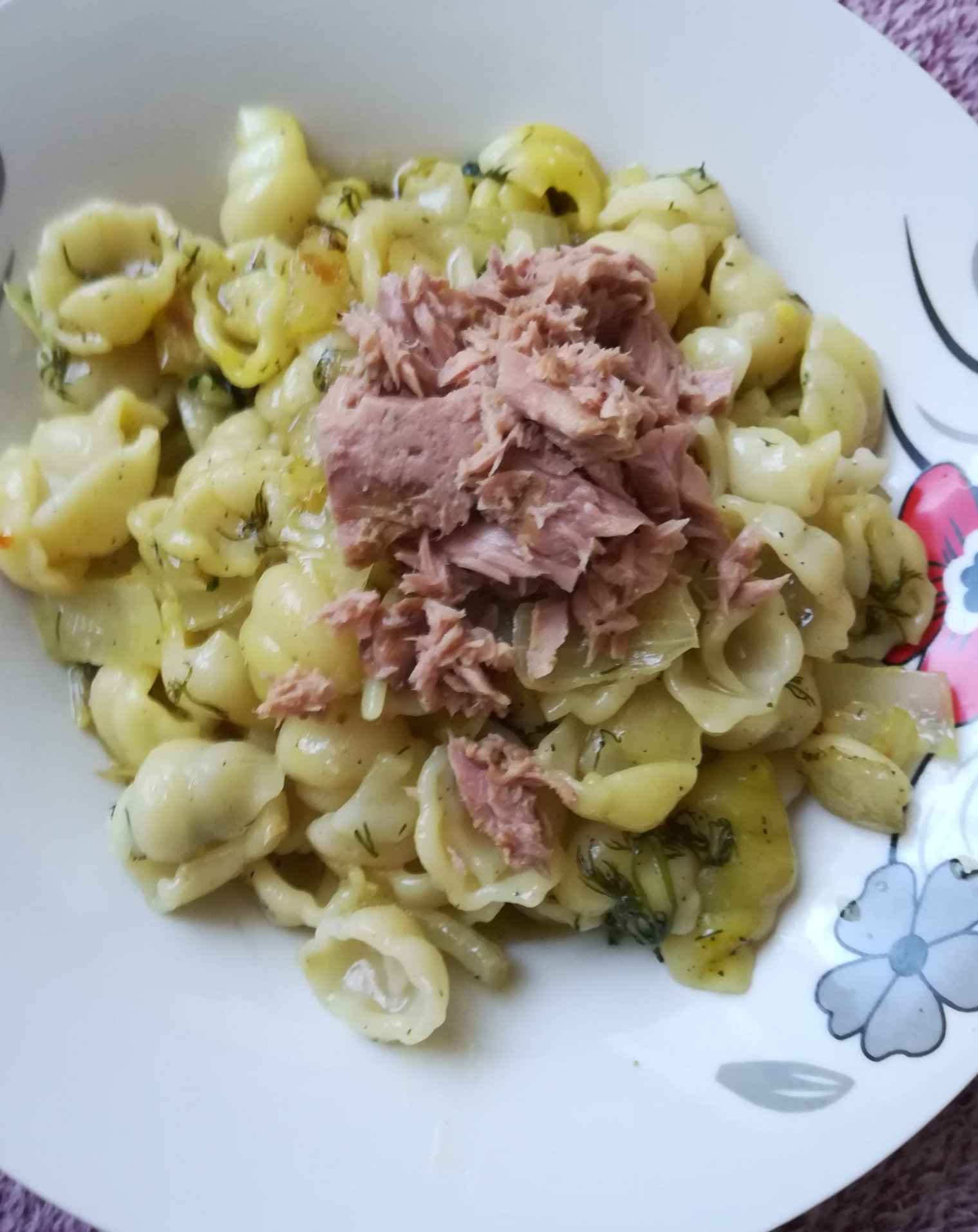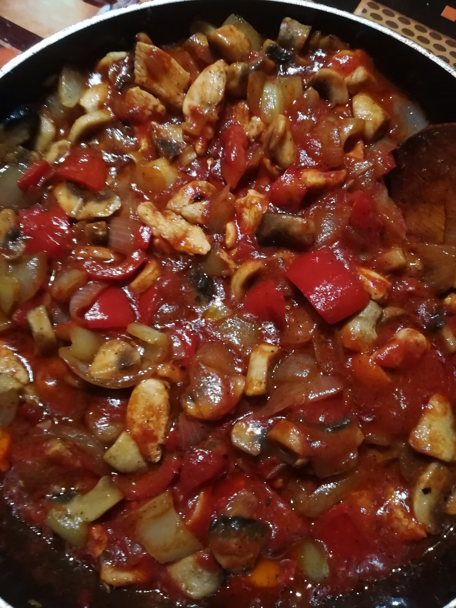 и мъничко зехтин, запържени на сух тиган.В същия тиган-само лук до леко омекване.