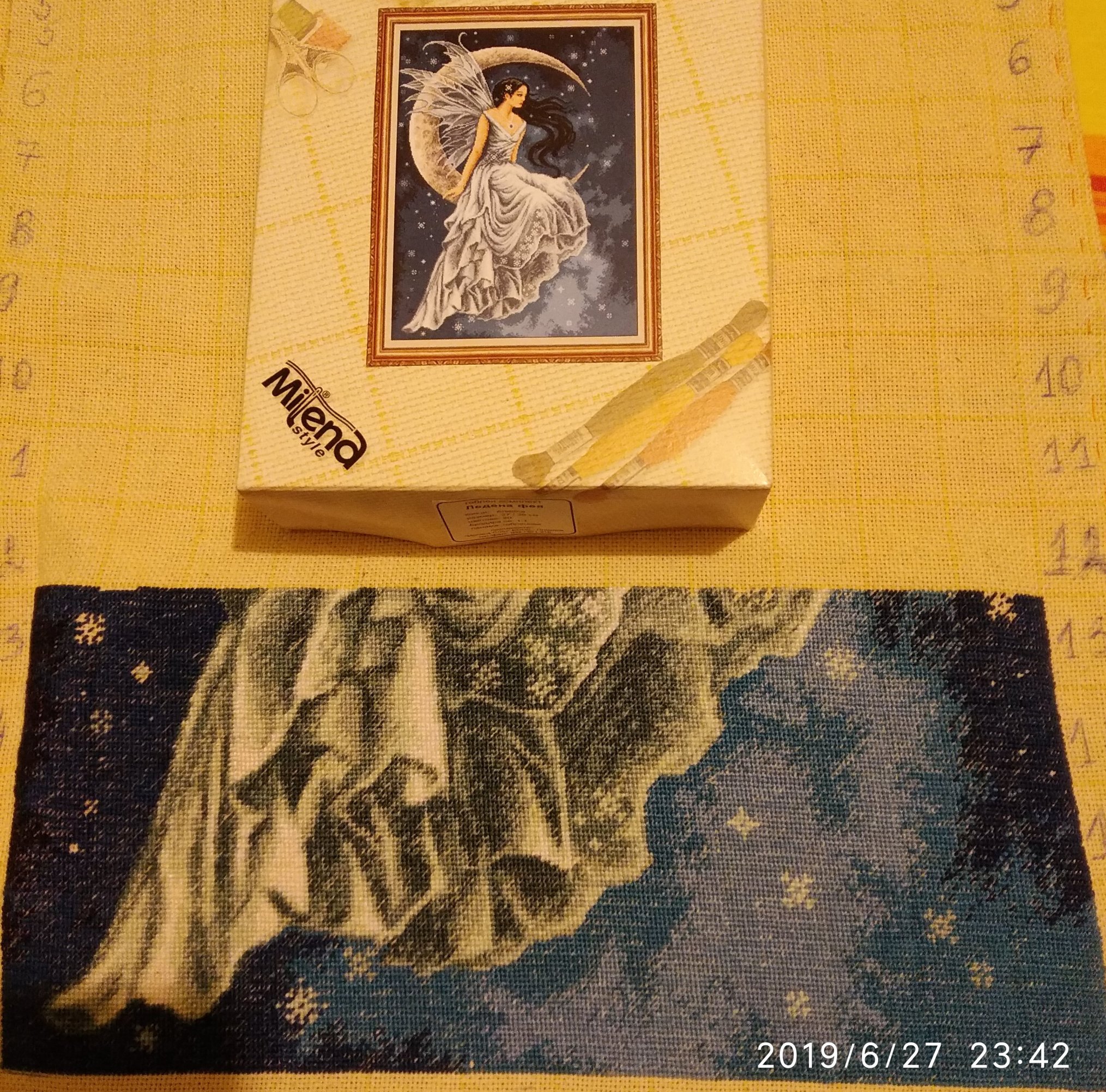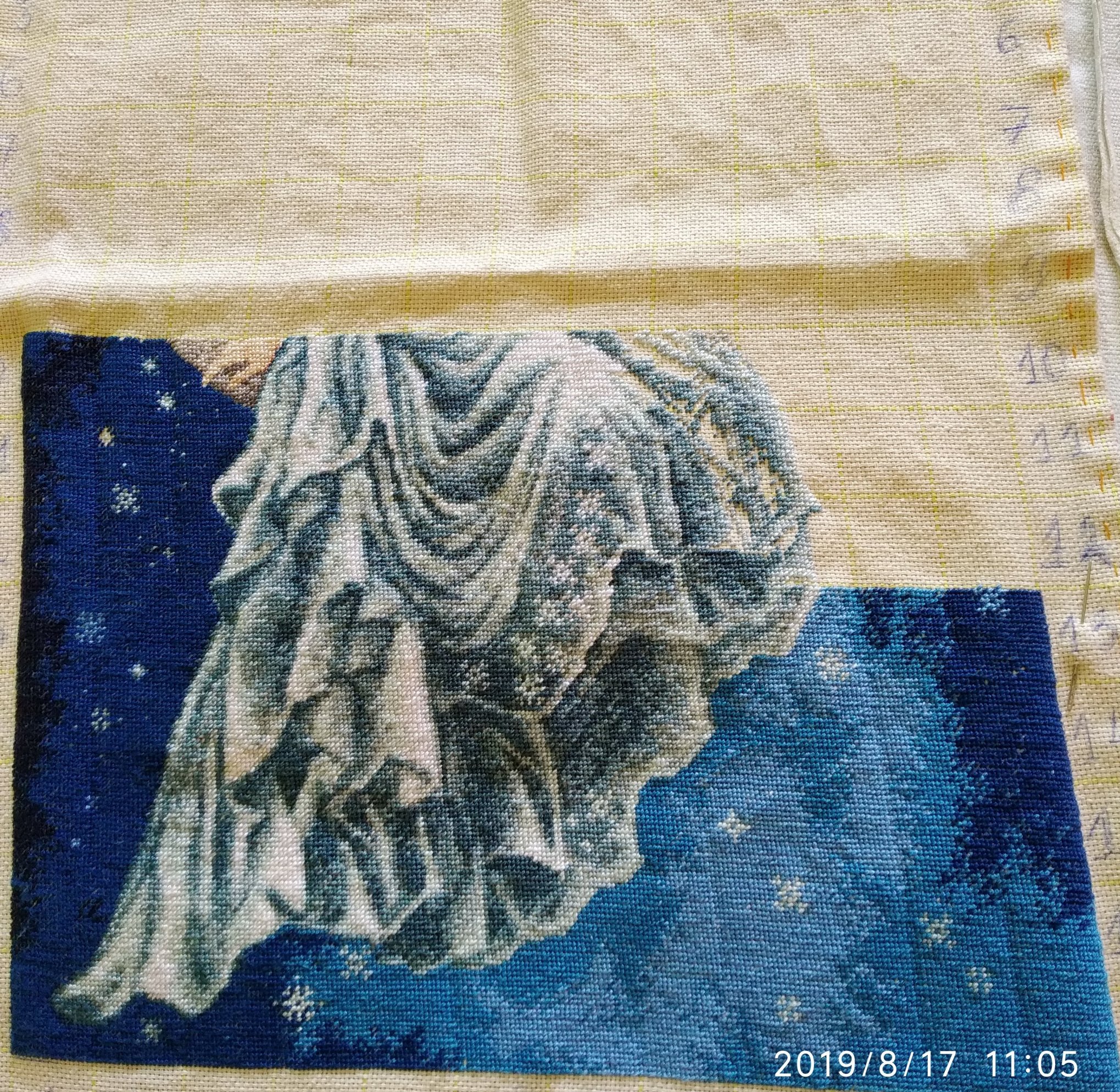 При мен напредъка е малък, защото приключвах един друг гоблен, но ще го покажа, когато го завърша.