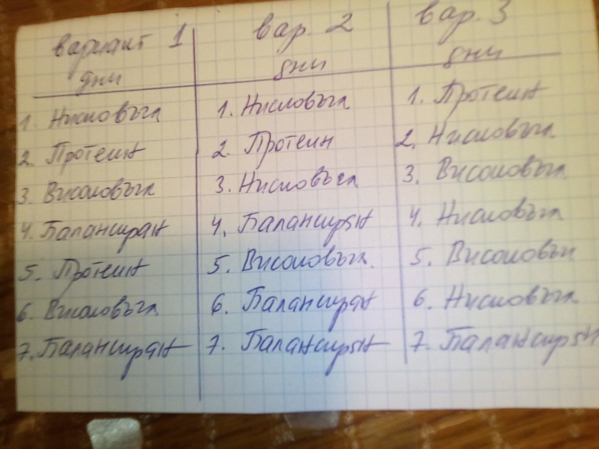 4ти ден - средновъгл.(балансиран) - 3-4 гр./кг тегло