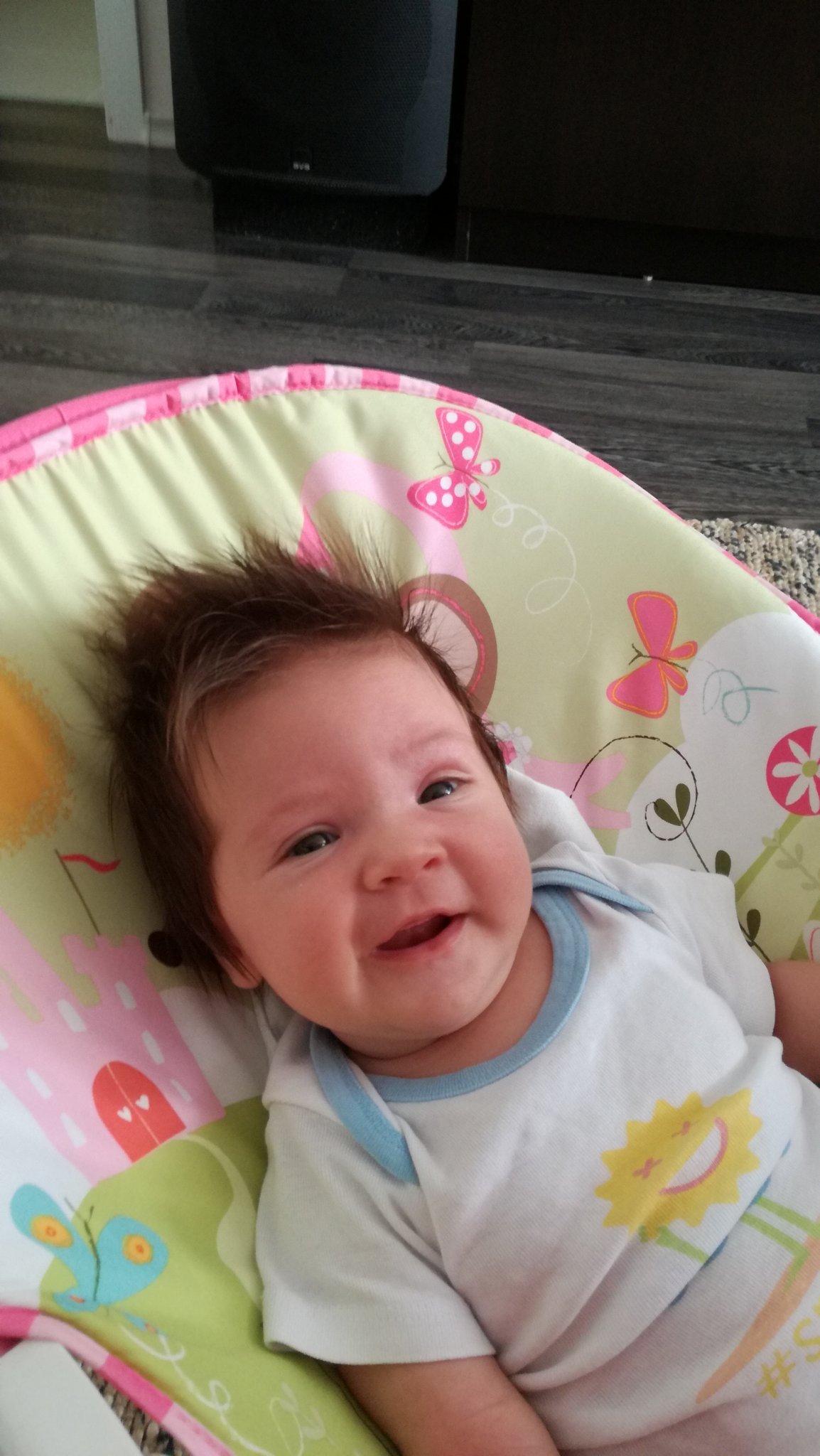 Таткото сресва от време на време. Не съм стимулирвала скалпа. Тя се роди така но май леко започна да се разрежда косичката. За активната гимнастика аз я изкарах доста отрано, беше на месец и половина, задържах я по малко 10 мин а сега , на 2 месеца и 3 дни сме вече говори на играчките си смее се и свикна доста добре. Стандартната е.