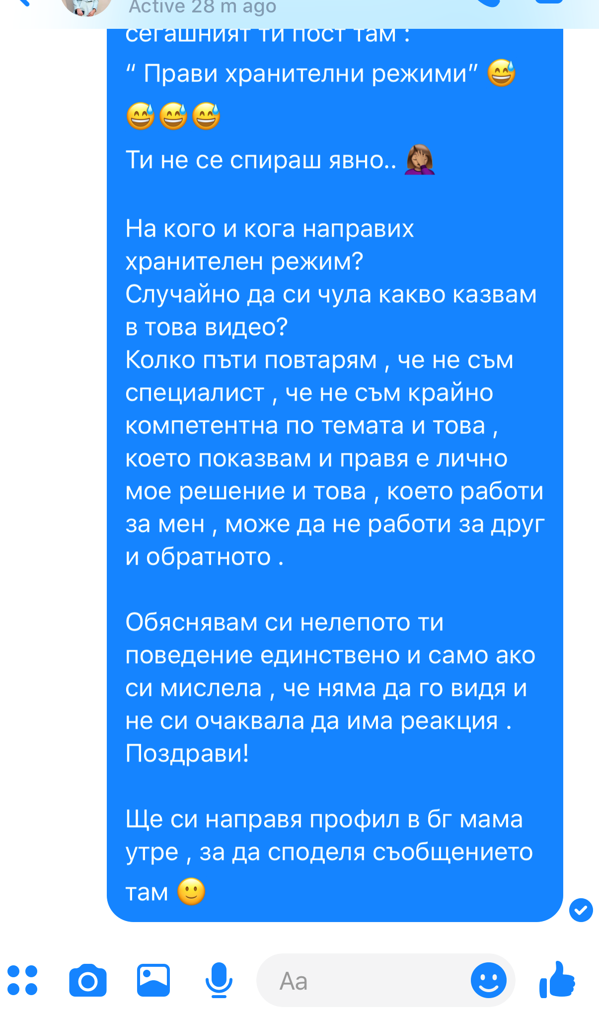 Да , никой не е длъжен да ми отговаря , но ако аз напиша и обвиня някой в нещо , защо да не му отговоря , когато този човек има против тези изказвания и искат да се разберат насаме?