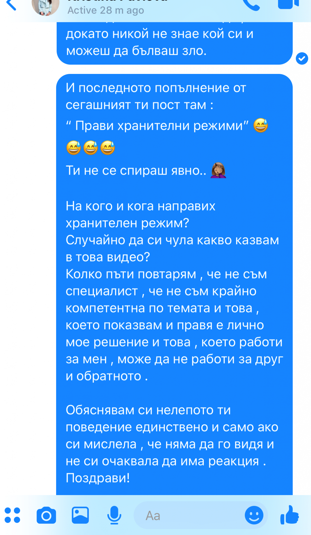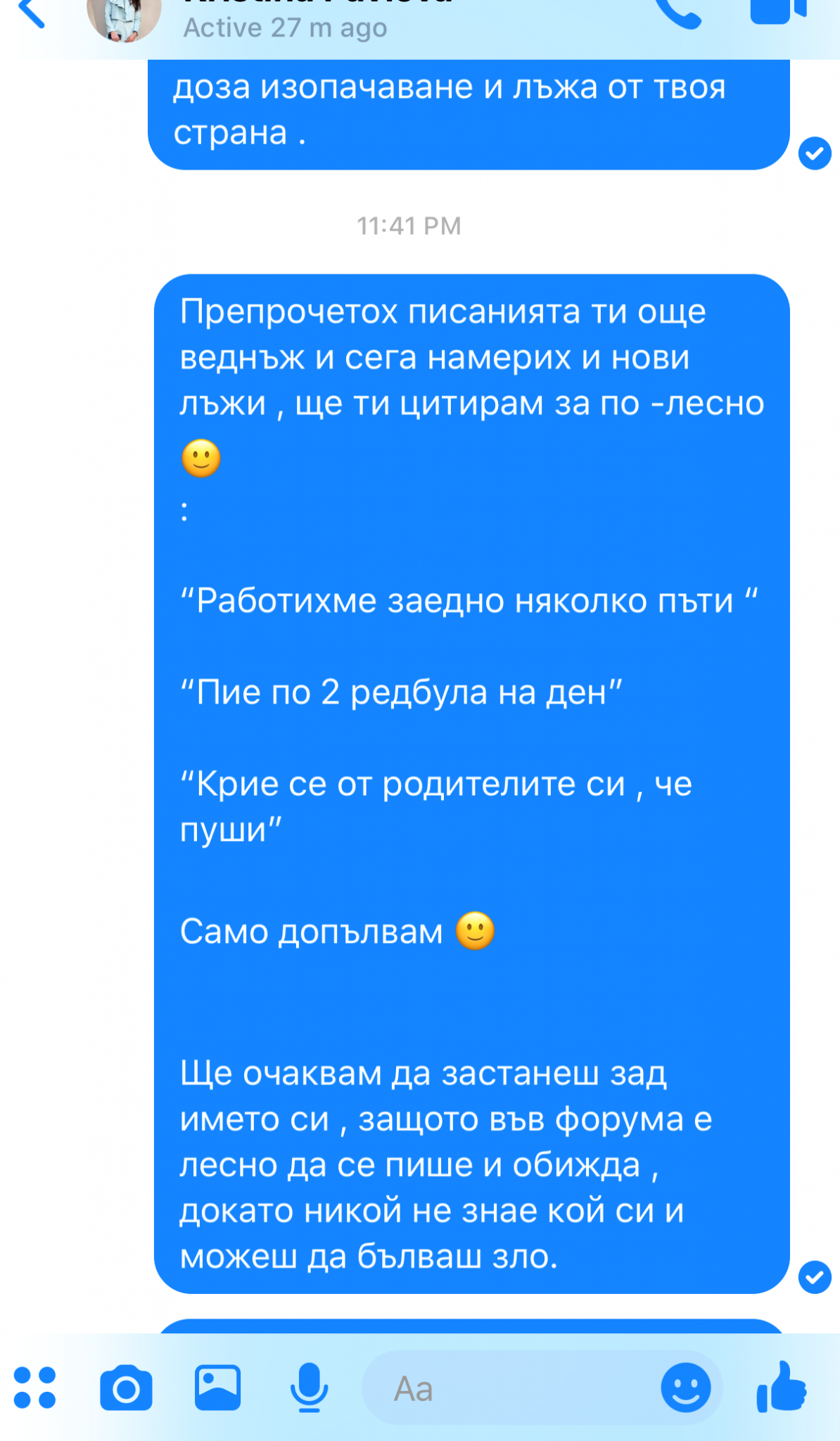 Обръщам се за последно към теб - КПП , защото разбирам , че можеш да се обясняваш и лъжеш до безкрай , а не вярвам на някой да му е интересно да чете тези глупости. Все още не разбирам защо не ми отговаряш в личен чат , а пишеш и занимаваш останалите? 😅