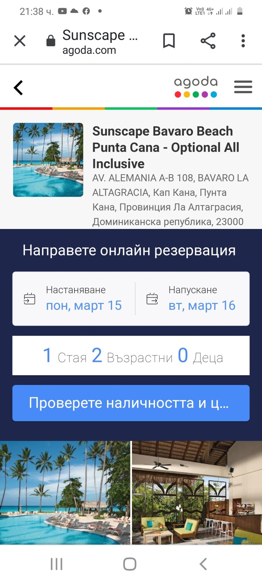 Adventurer, мерси. Погледнах Barcelo Bavaro Beach, но няма свободни за датите, които търся. Всъщност нямаме самолетни билети, така че ще проверя пак когато се снабдим.