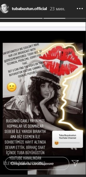 Сегодня мы прервали нашу прямую трансляцию из-за зависаний, по тех. причинам. Но мы продолжили наш разговор с Эгемен, и записали, через несколько часов вы сможете его посмотреть на YouTube канале Тубы Бюйюкюстюн.