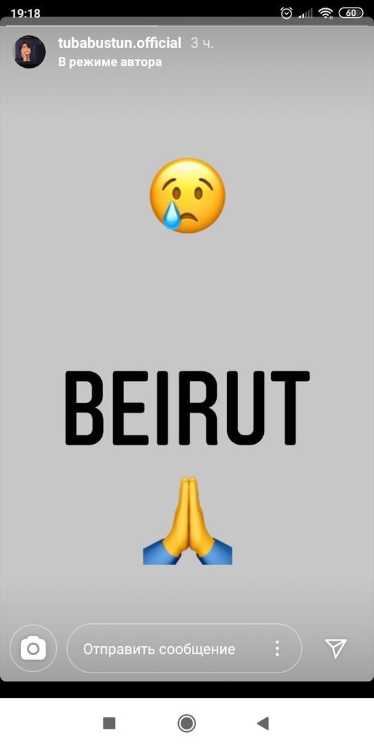 И многие художники по всему миру выразили солидарность с этим делом, в том числе знаменитая турецкая актриса Туба Бюйюкюстюн, которая выразила свою печаль по поводу произошедшего в сторис своего аккаунта в Instagram, где она написала «Бейрут» с грустным лицом и двумя связанными вместе руками в знак мольбы.
