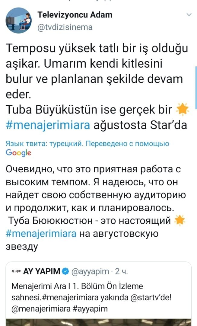 🆕новостной блогер: Очевидно, что это приятный проект с высоким темпом. Я надеюсь, что этот сериал найдет свою аудиторию и продолжится как и планировалось. Туба Бюйюкюстюн- настоящая Звезда💥в новом сериале #ПозвониМоемуАгенту