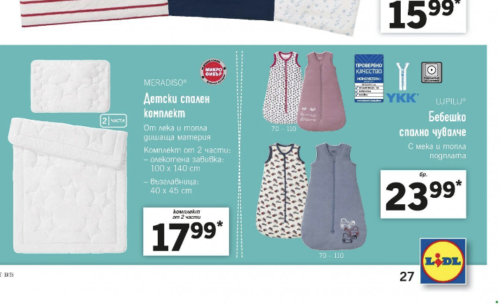 А на мен чувалчетата в Лидл ми се видяха големички като за новородено и малко бебе. Всъщност то не знам и дали въобще бебето ще ги хареса. Взех само две бодита, компромисно с десените. Като цветове за момчета никак не ми харесват.