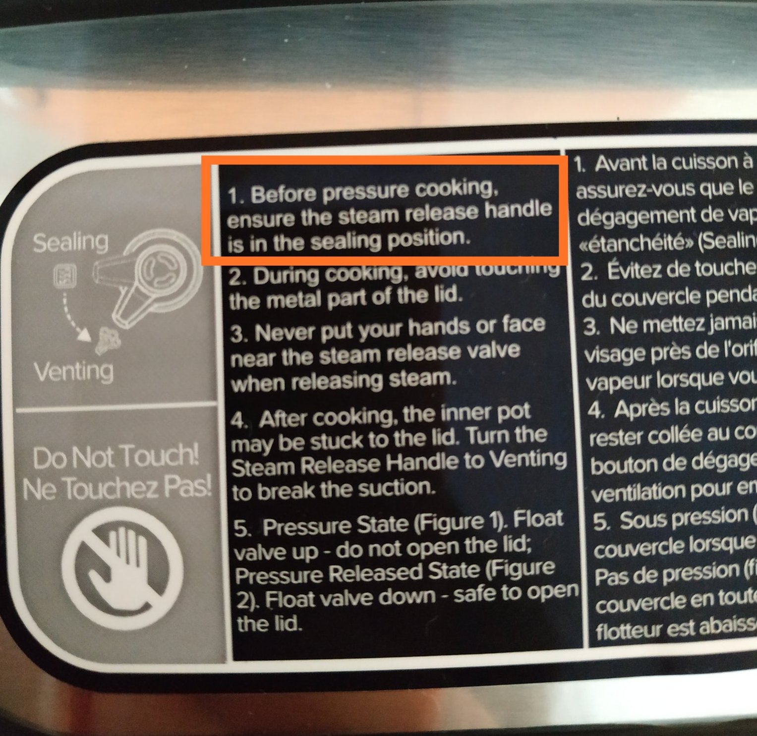 И се зачетох в един стикер, на който пише, че клапанът трябва да е в позиция Sealing при готвене под налягане... Канселирах програмата и като го бутнах леко в посока Sealing, взе да излиза пара и го оставих така. Колко време след спиране на програмата може да пуснем уреда пак с правилно позициониран клапан?