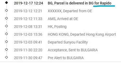 Аз имам няколко пратки пристигнали от седмица и повече в София, но така и не са дошли до Варна. За сметка на това получих такива, които пък изобщо не знаех, че са вече в България. На проследяване ми даваше, че още пътуват насам Laughing Та се очертава пътя от Китай до БГ да е по-кратък от София-Варна май Stuck Out Tongue Closed Eyes