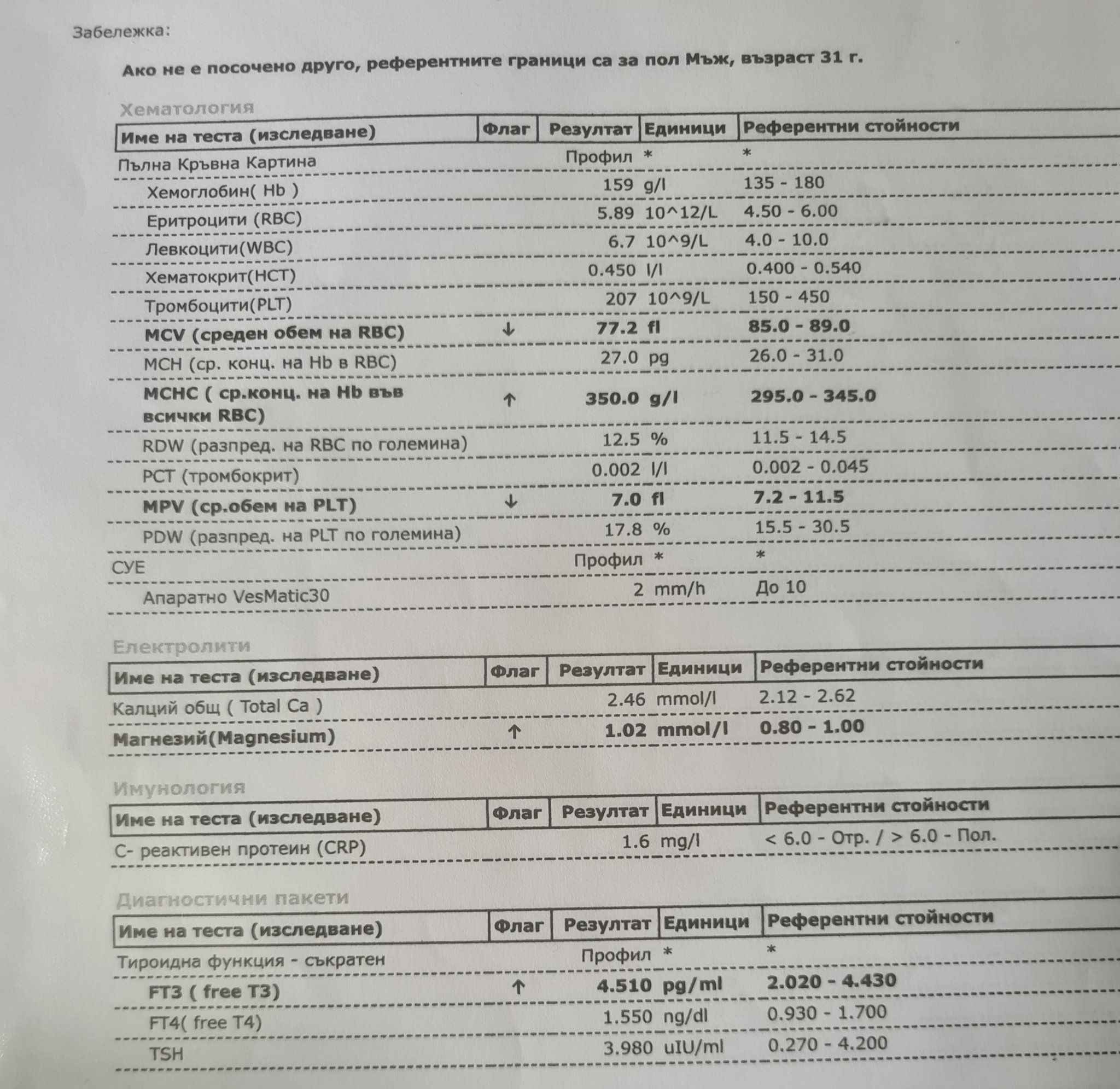 нищо не казаха..били леко високи,но не отговаляло нито на хипер нито на хипо.заради някаква зависимост и казаха,контрола след 6 месеца,което ми се стори странно.да приема магнезий явно е време за почивка Grinning
