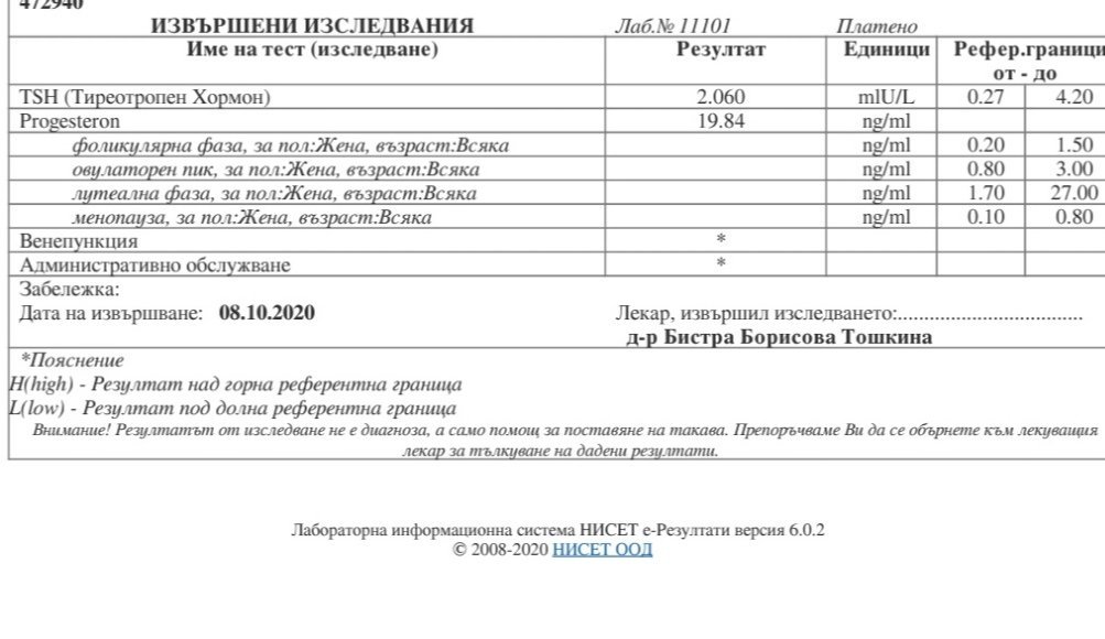 Здравей, Денис, може ли коментар на изследванията ми, целта е забременяване, прогестерона е пуснат на 7ми ден след О. Simple Smile Благодаря предварително!