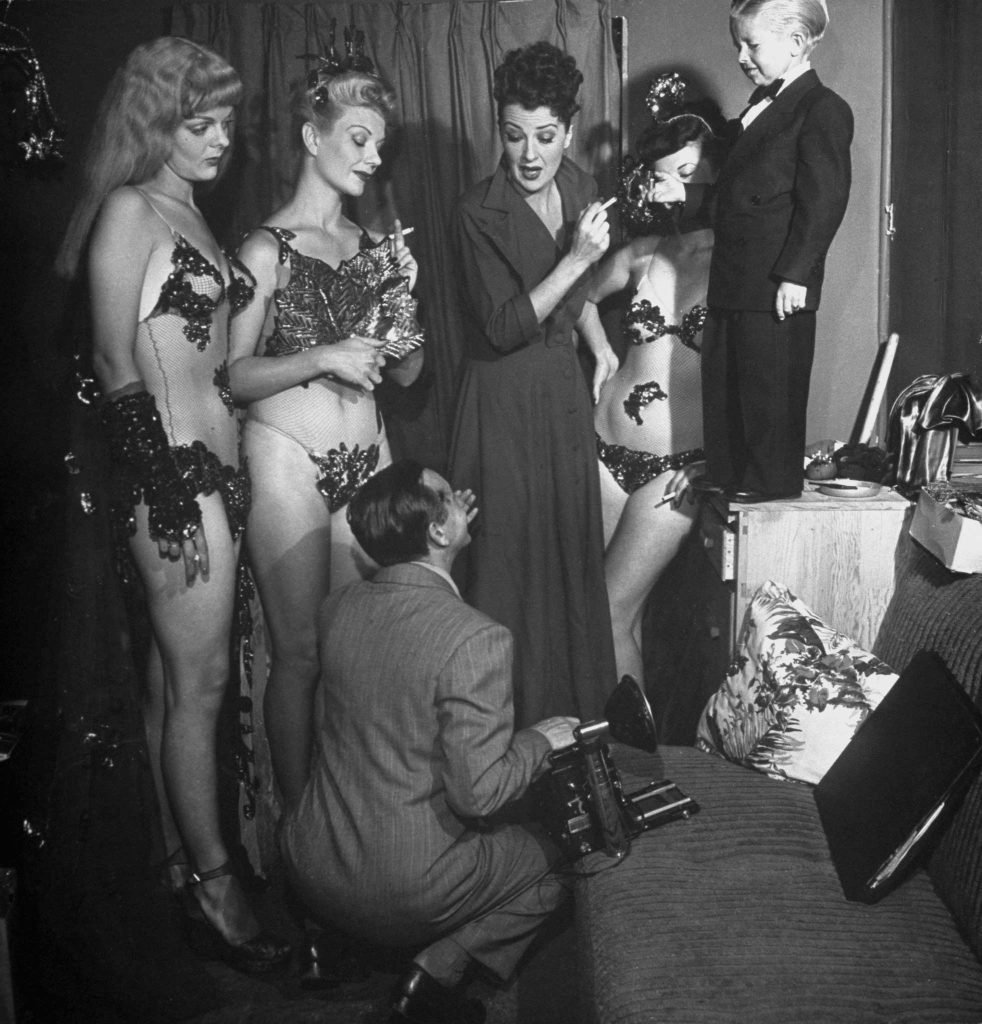 Известната бурлеска танцьорка Джипси Роуз, карнавалният артист К.Ериксон и други танцьори, 1959 г.
