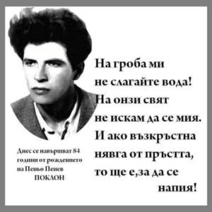 Пеньо Пенев е имал много лични проблеми, постоянно го е търсела милицията, жена му непрекъснато е пускала жалби, че не е плащал издръжка за детето. Бях чела преди време нещо като негови дневници и спомени на негови приятели. Викали са го редовно от комсомола да дава обяснения за това и за пиенето.Баща ми навремето имаше един кожен тефтер със спомени и стихове, и на първа страница беше написано неговото:
