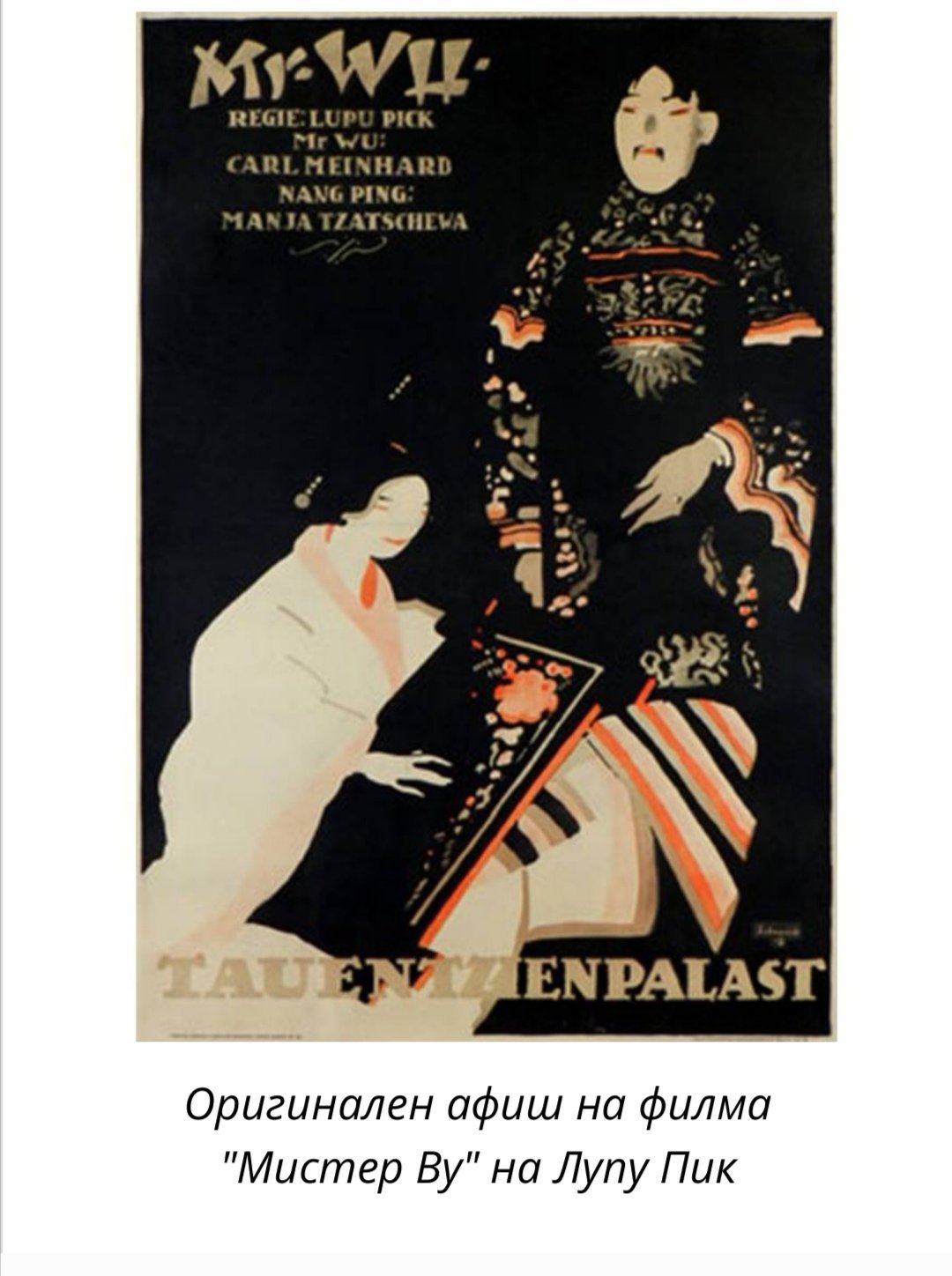 Театър Одеон през 1919г.Започва от днес дългоочакваната сензация „Мистер Ву”. Великолепната японска драма в пет големи части е с главното участие на г-ца Маня Цачева единствената българска кинозвезда.