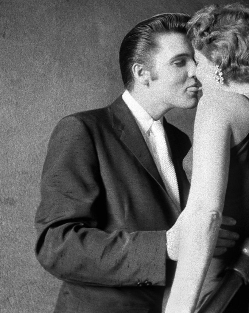 Елвис целува Боби Оуенс зад кулисите на театър Моск.