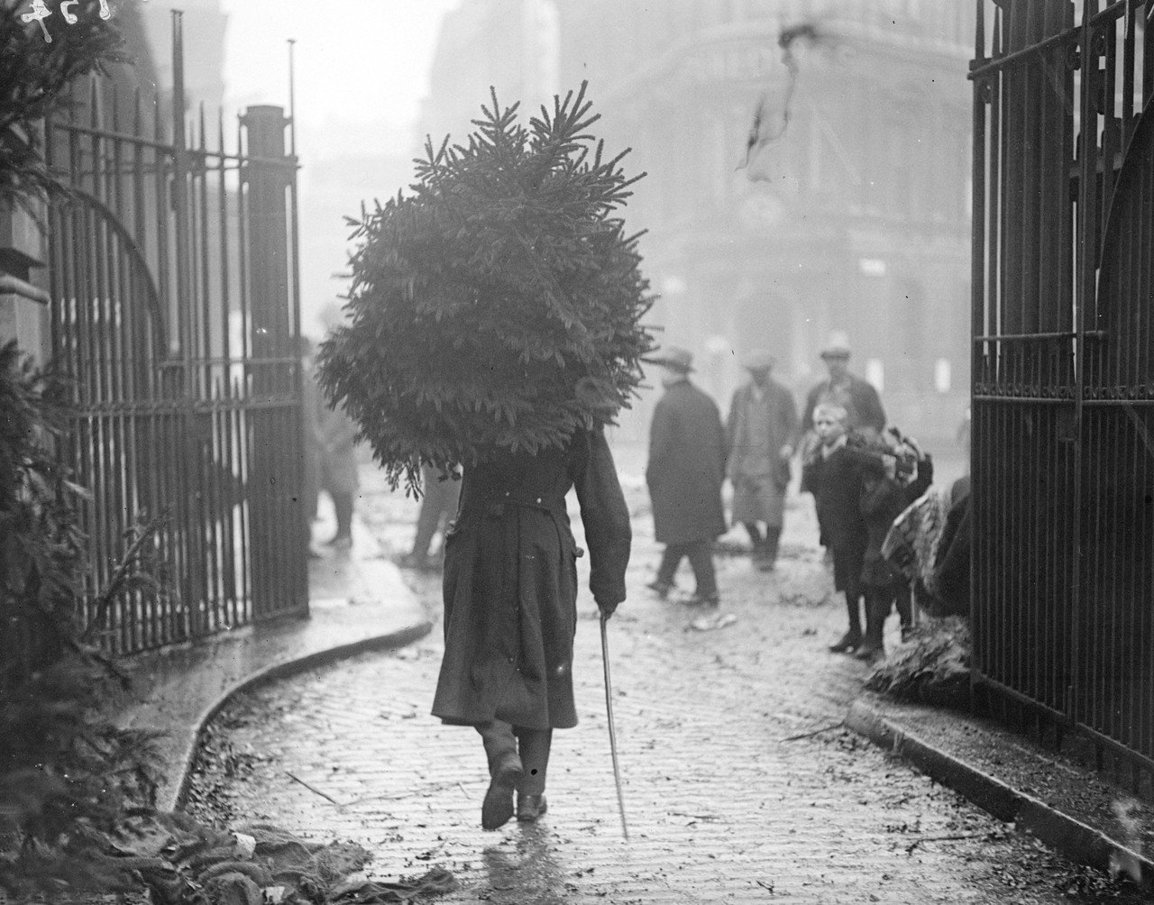 Семейство гледа искрящите светлини на коледното дърво в катедралата „Свети Павел“, Лондон, 16 ноември 1938 г.
