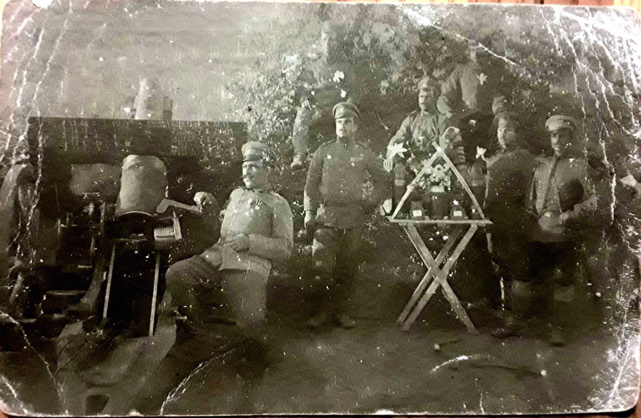 Обичам стари снимки! Прадядо ми на фронта - седналият :