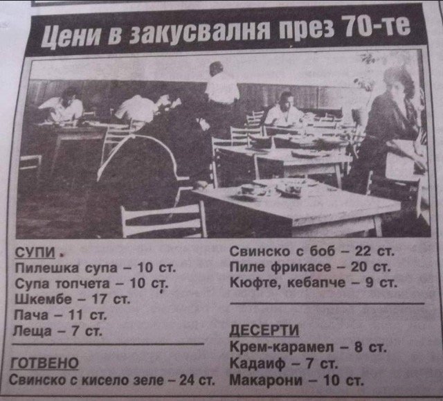 Спомням си ,че билетчето за ГТ и бозата бяха по 6 ст.,кис.мляко-26ст.,краве сирене-2,60лв/кг,овче-3,60....