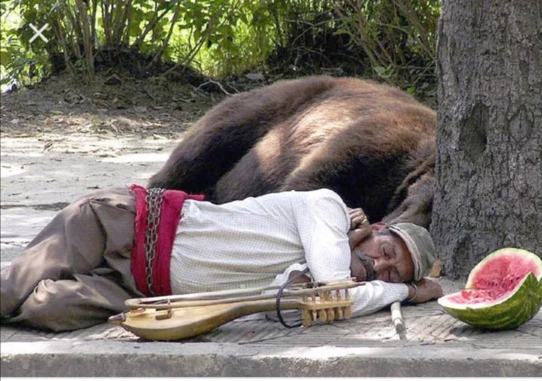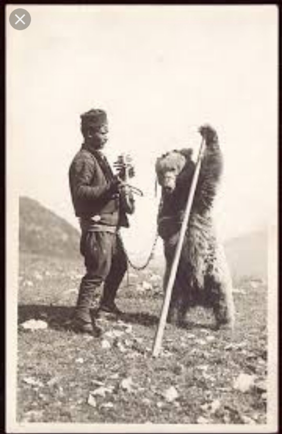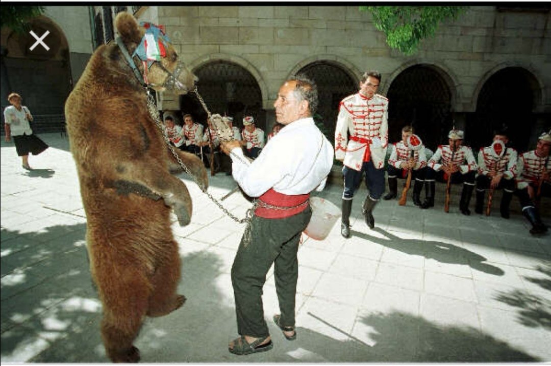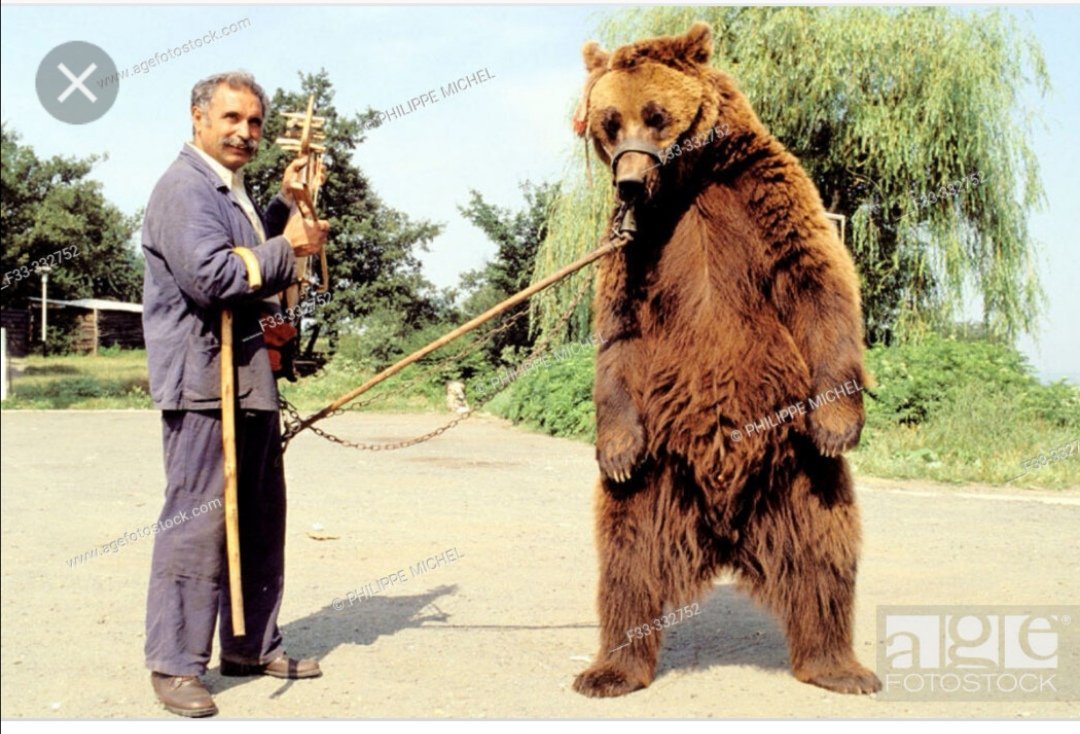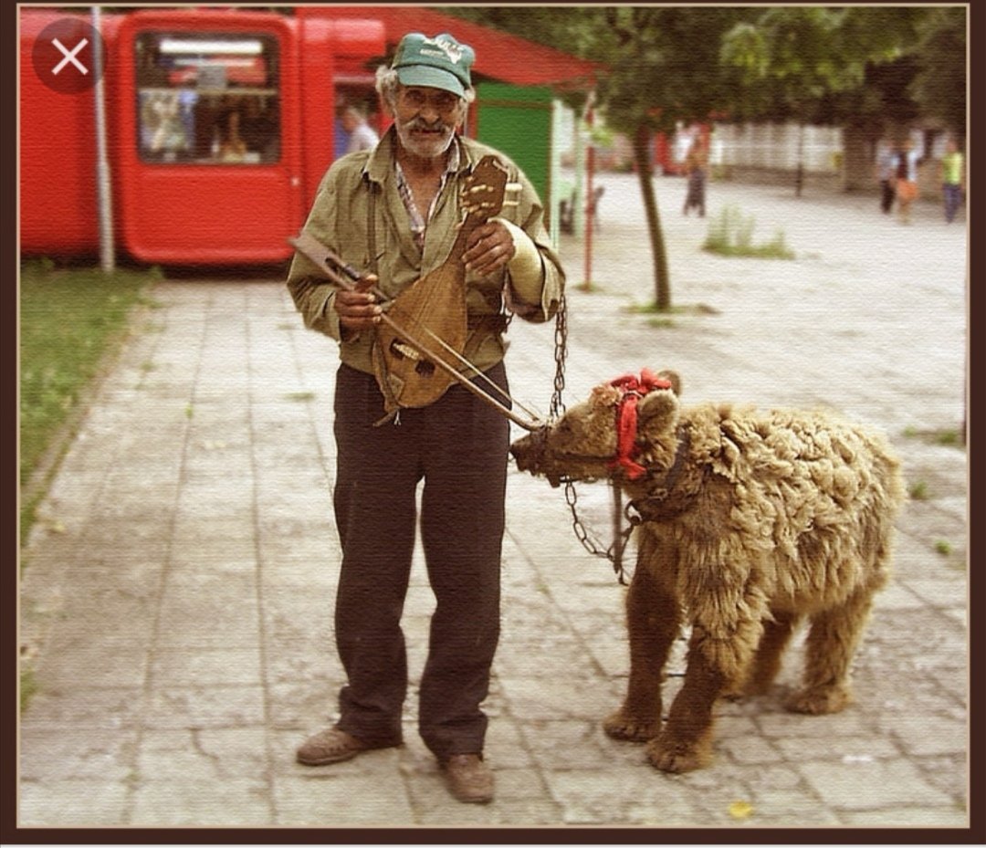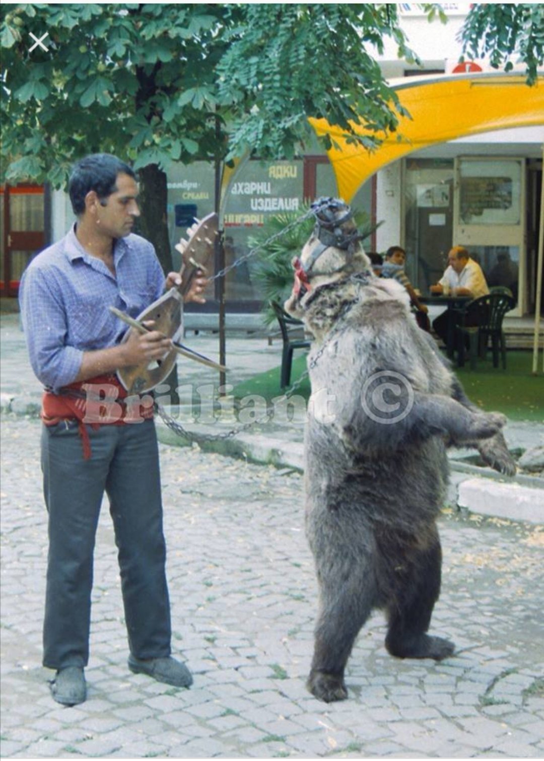 "Преди повече от половин век през лятото цигани мечкари идваха в родното ми село Мечка, Плевенско Бяха на групи от двама-трима души и довеждаха опитомени и обучени от тях големи мечки да играят. Мечките бяха вързани с по два синджира – с по-дебел за врата и по-тънък за поставената на върха на носа им желязна халка. Другите краища на синджирите мечкарите връзваха в широките колани на кръста им. На врата на мечките висяха малки звънчета, а до ушите им – червени пискюли. Циганинът водеше мечката, свирейки с гъдулка, а тя пристъпваше след него, като постоянно въртеше главата си заради лаещите я кучета. След мечката вървеше циганката с две големи торби на раменете си и две дълги тояги в ръцете си да брани мечката от кучета.