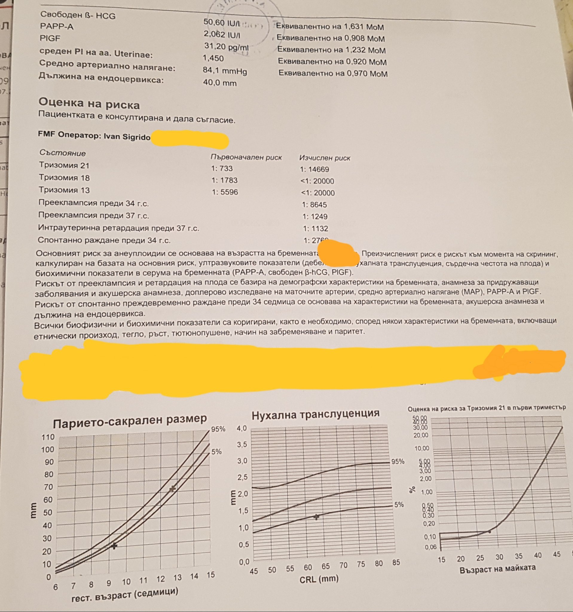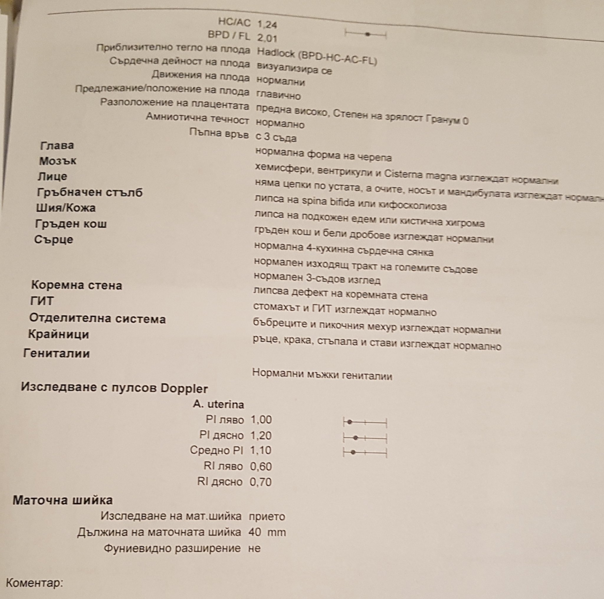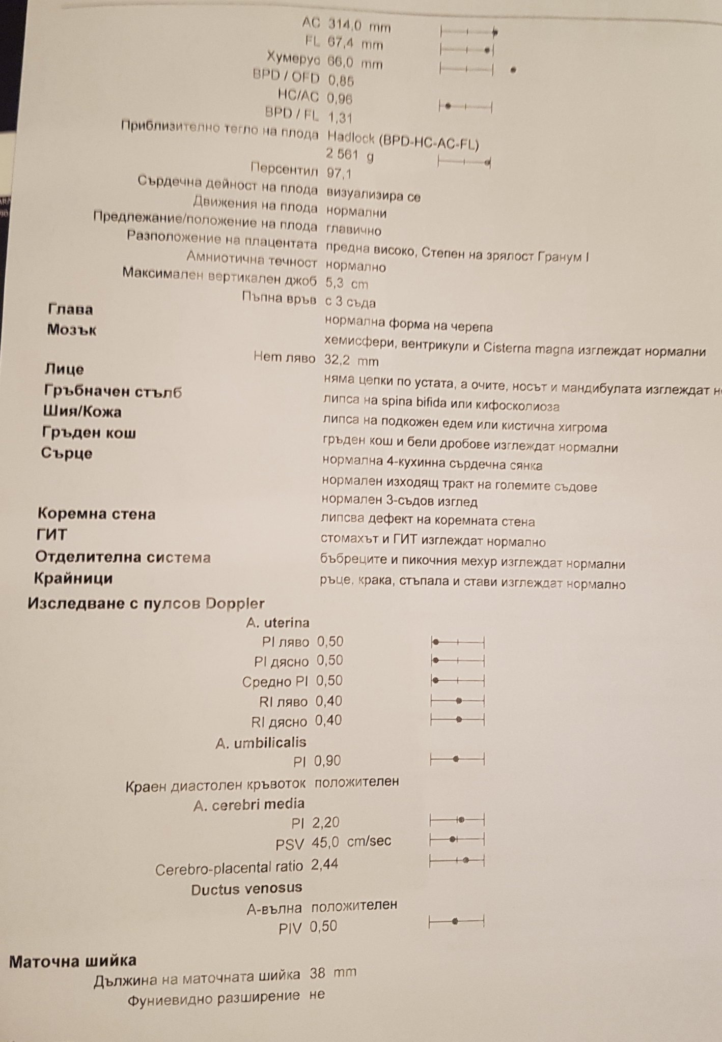 Нищо не ми даде! Ехографския преглед беше само с информацията, която е нужна за скрининга и я дадох, когато ми взеха кръв.