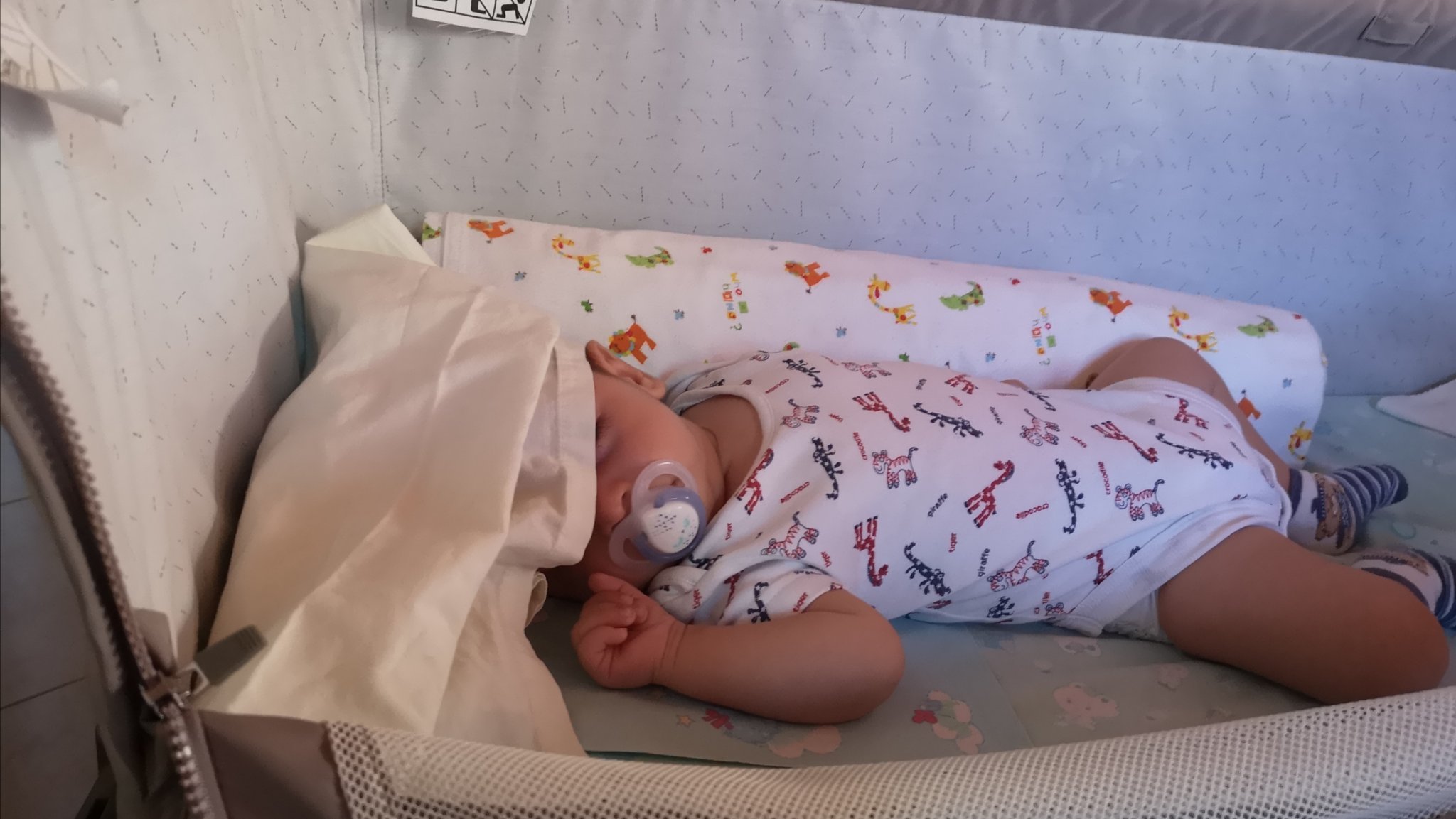 Аз моята бебка още я подпирам с възглавница с ограничител, да мърда от гръб настрани и обратно, но да не може да се завърта. Страх ме е, че не вдига стабилно главата, да не се задуши, ако се обърне по коремче. И вечер спи подпряна, през деня я пускам да мърда колкото иска.