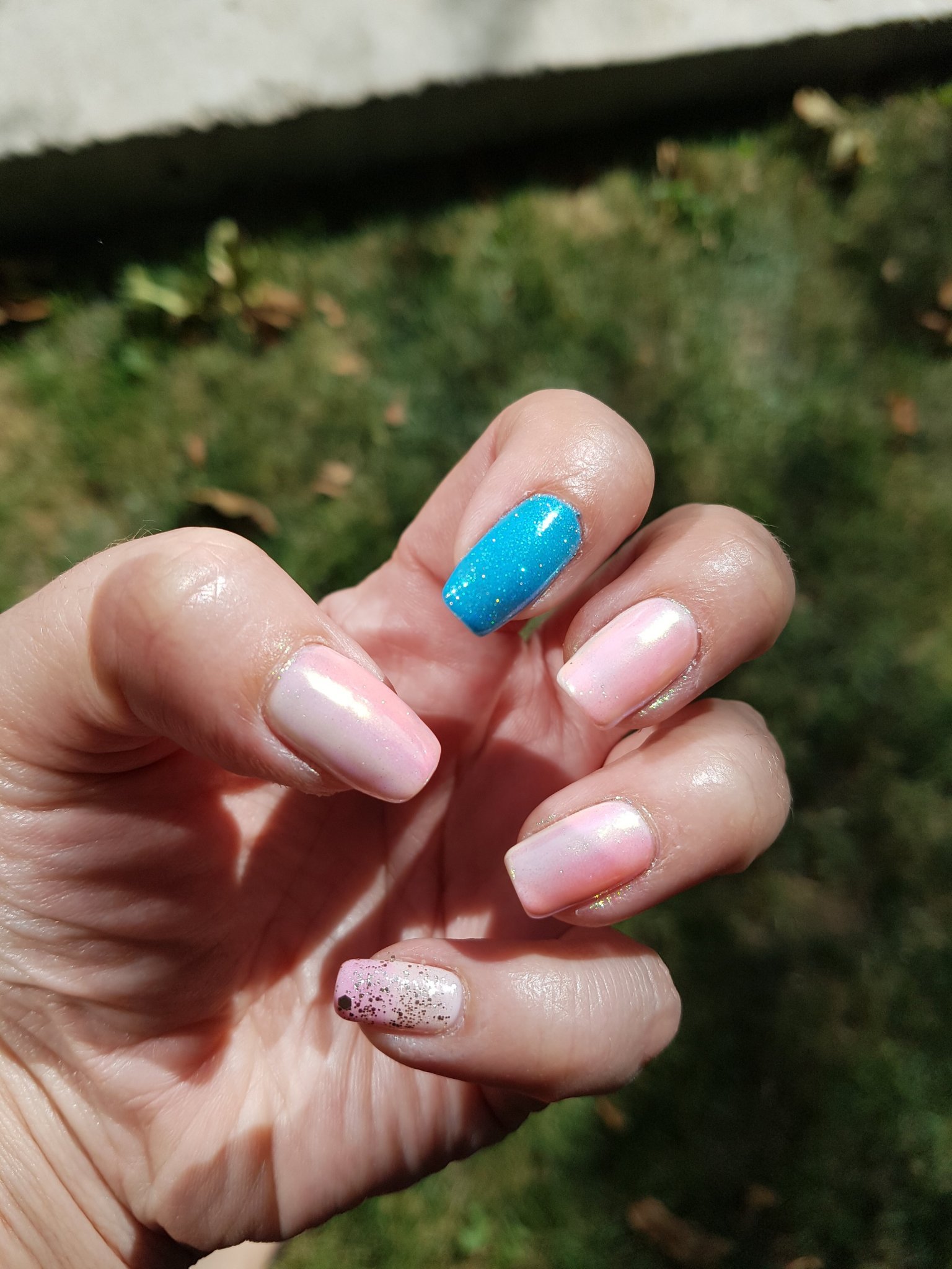 Много красиво ти се е получило! Как успя с омбрето не знам- при мен беше кошмар. Уж леко уж “туп-туп” , няма братче, разложи се и долния лак , започна да лепне, абе ужас🙂
