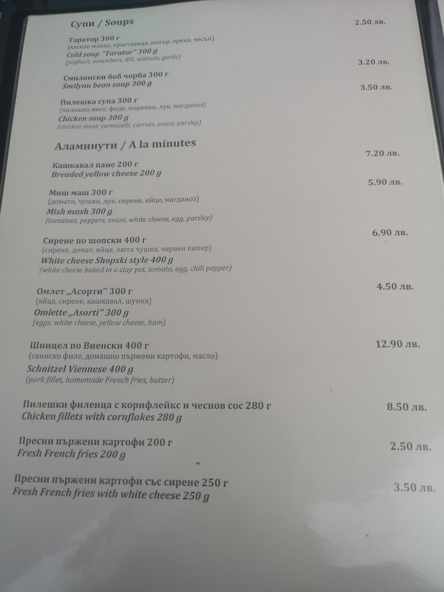 Прикачвам няколко снимки от менюто в ресторанта на Малина, ние там хапвахме.