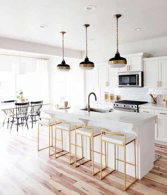Какъв цвят трябва да бъдат трапезните столове за кухня с бяла и дървена тема?