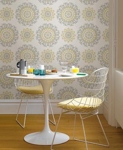 Какъв цвят на стените би бил подходящ за стая с подови настилки в тон с тапетите и кухня в бяло?
