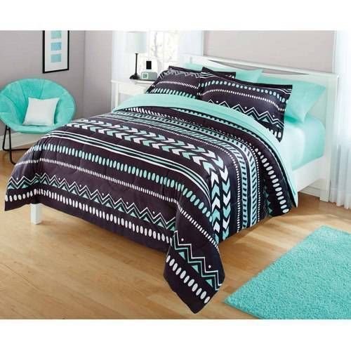 Направете леглото тюркоазено синьо. Пердета, аксесоарчета, възглавници можете да подберете в принт от комбинация на бяло, тюркоаз и тъмнокафяво (шоколадово) . Има много варианти:  модерните флорални мотиви, геометрични фигури, пайети. Закачете картинки по стените. Освежете мебелите от венге с тюркоазено, ярко розово и бяло. Купете й спално бельо в подходящите цветове.