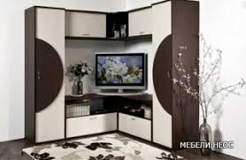 Ето снимка на ъглова секция(грозна, според мен, но ще свърши работа за показно). Сега си я представи не с вътрешен ъгъл, а външен. Така че да обхване ъгъла между стената 220 и 300 м. Така телевизора ще може да се леда и от двата къта за сядане.