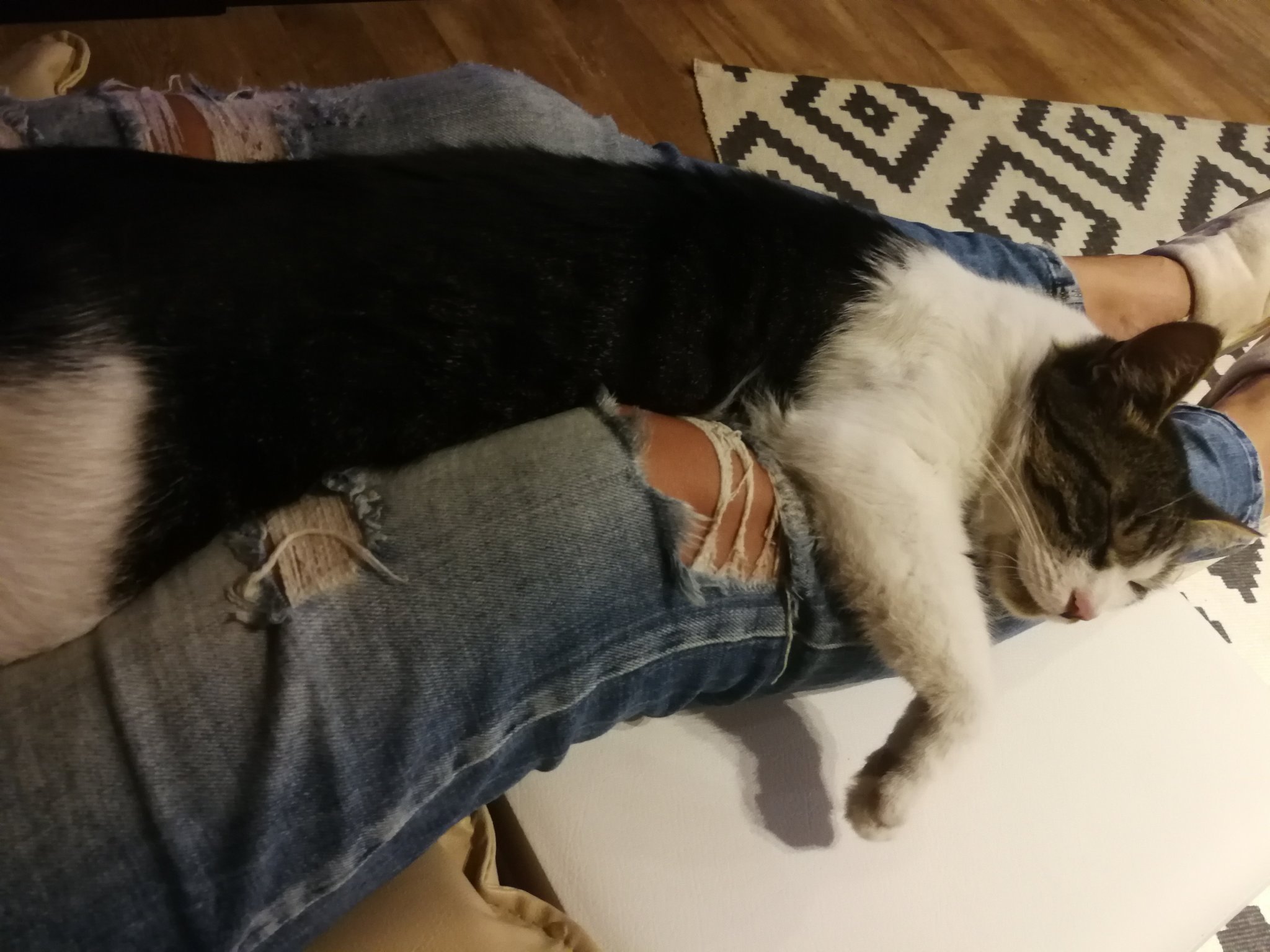 Тути, много яка снимка, моята котка така никога няма да легне върху мен, до мен - да и то леко на разстояние, това британките хич не са любеобвилни 😁