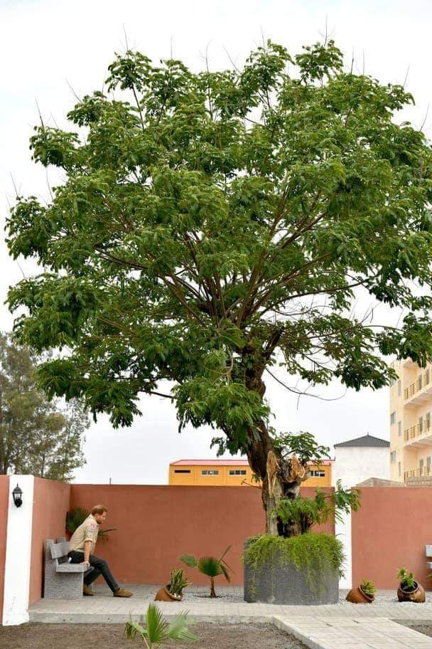 Prince Harry, Duke of Sussex sits alone beneath The Diana Tree in Huambo, Angola, which marks the spot where the Princess of Wales was photographed in 1997, on day five of the royal tour of Africa in Huambo, Angola - September 27, 2019