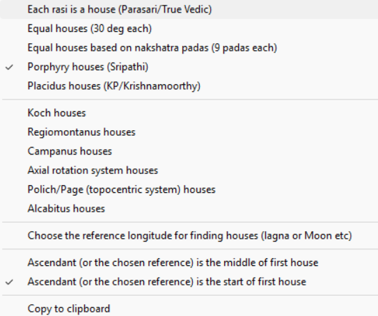 Има различни мнения и различните школи. Всеки решава как да използва бхава чалит и като настройки и като приложение. Има и такива, които не обръщат внимание на бхава чалит.  Аз използвам Пласидус и куспид – началото на дома/както е на скрийншота/. Ползвам я, когато има гранични разположения в Раши, на асцендент или планета в дом. Не и придавам голяма тежест при анализ, но я вземам под внимание.
