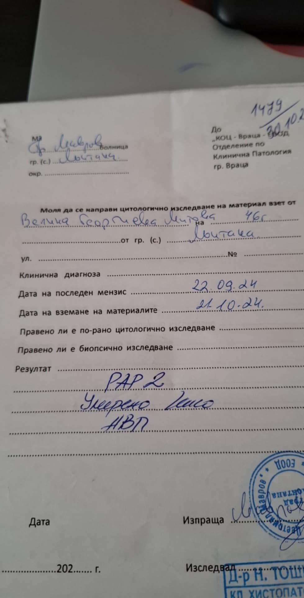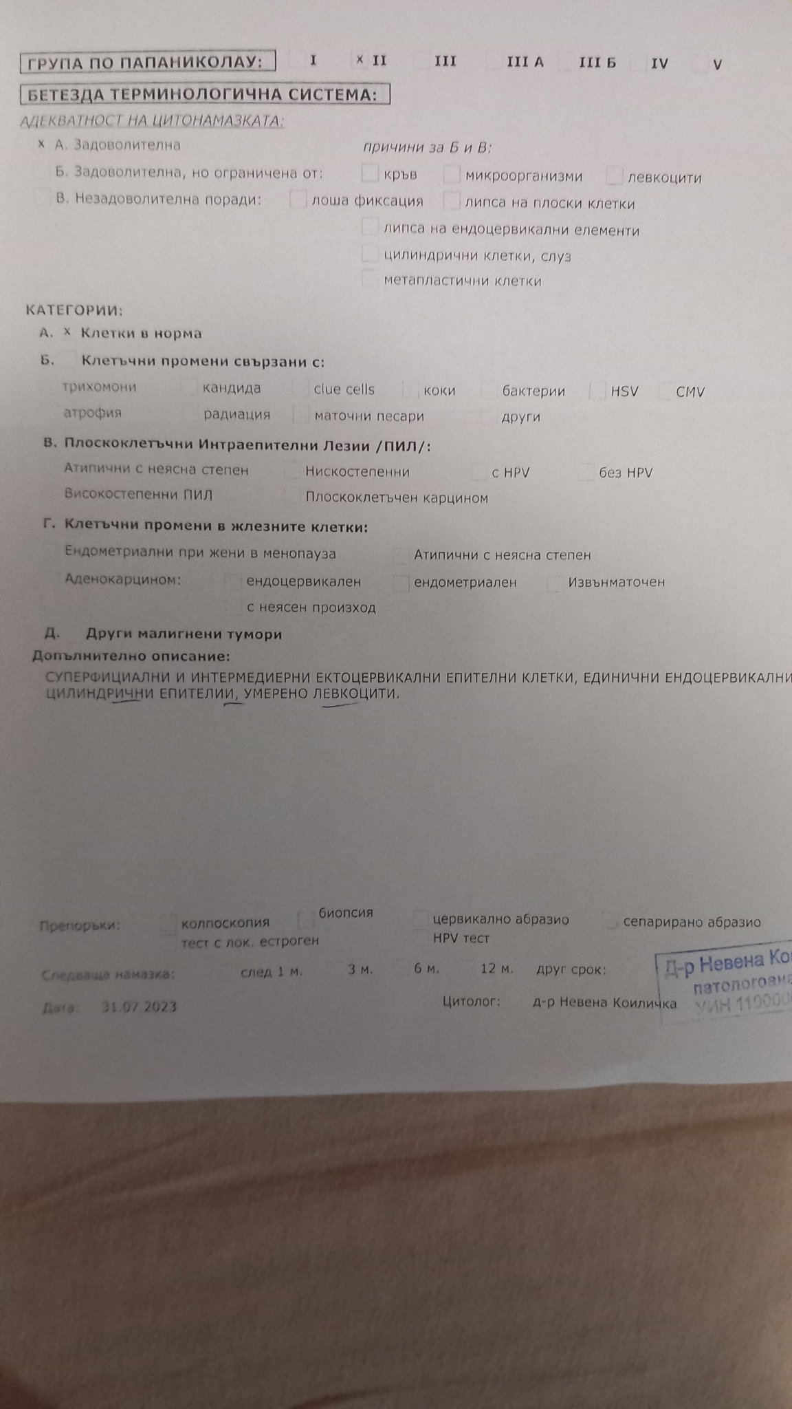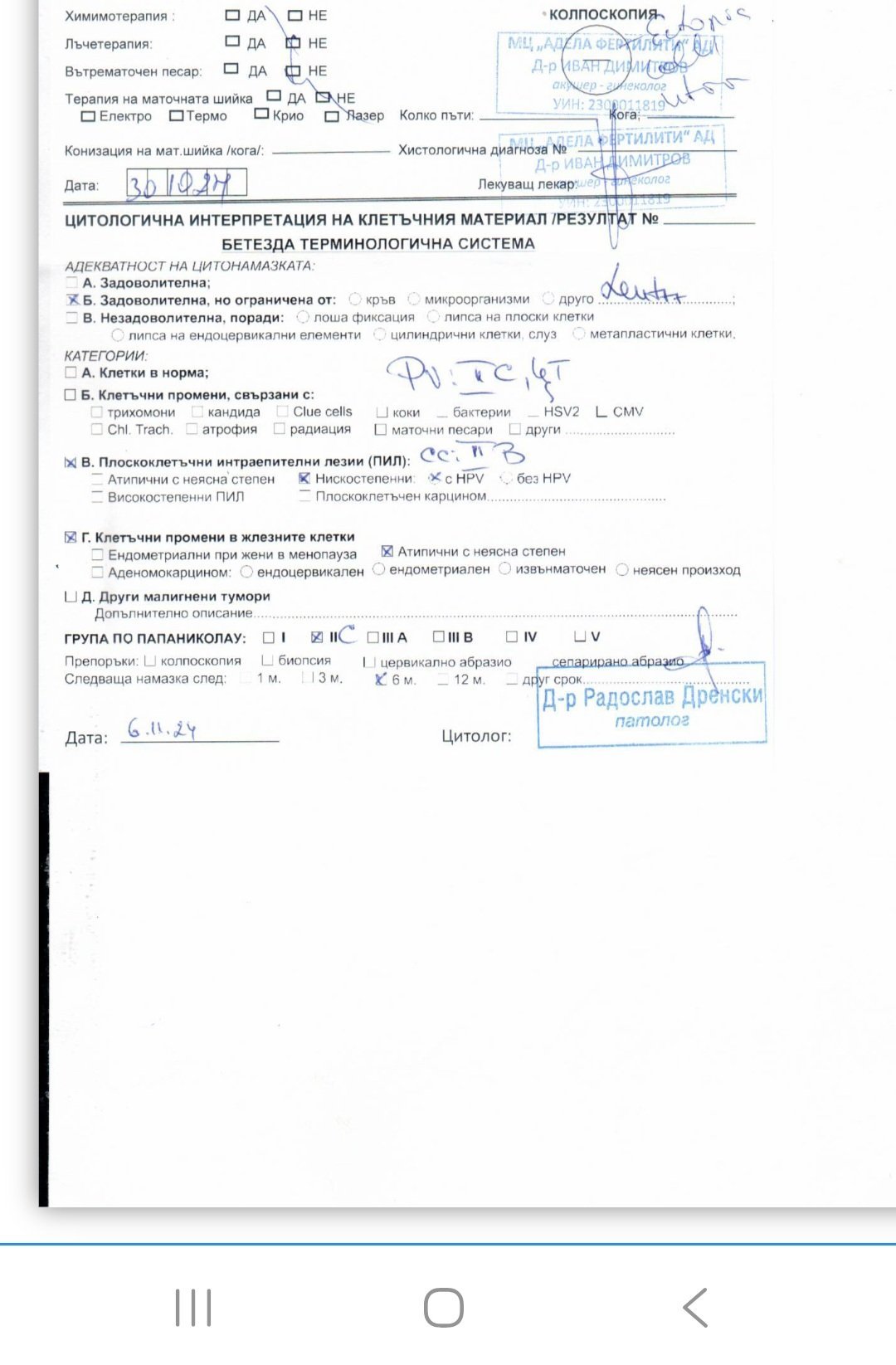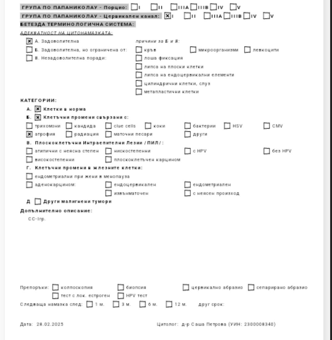 Какво да правя, ако се притеснявам от резултат IIIA от цитонамазка?