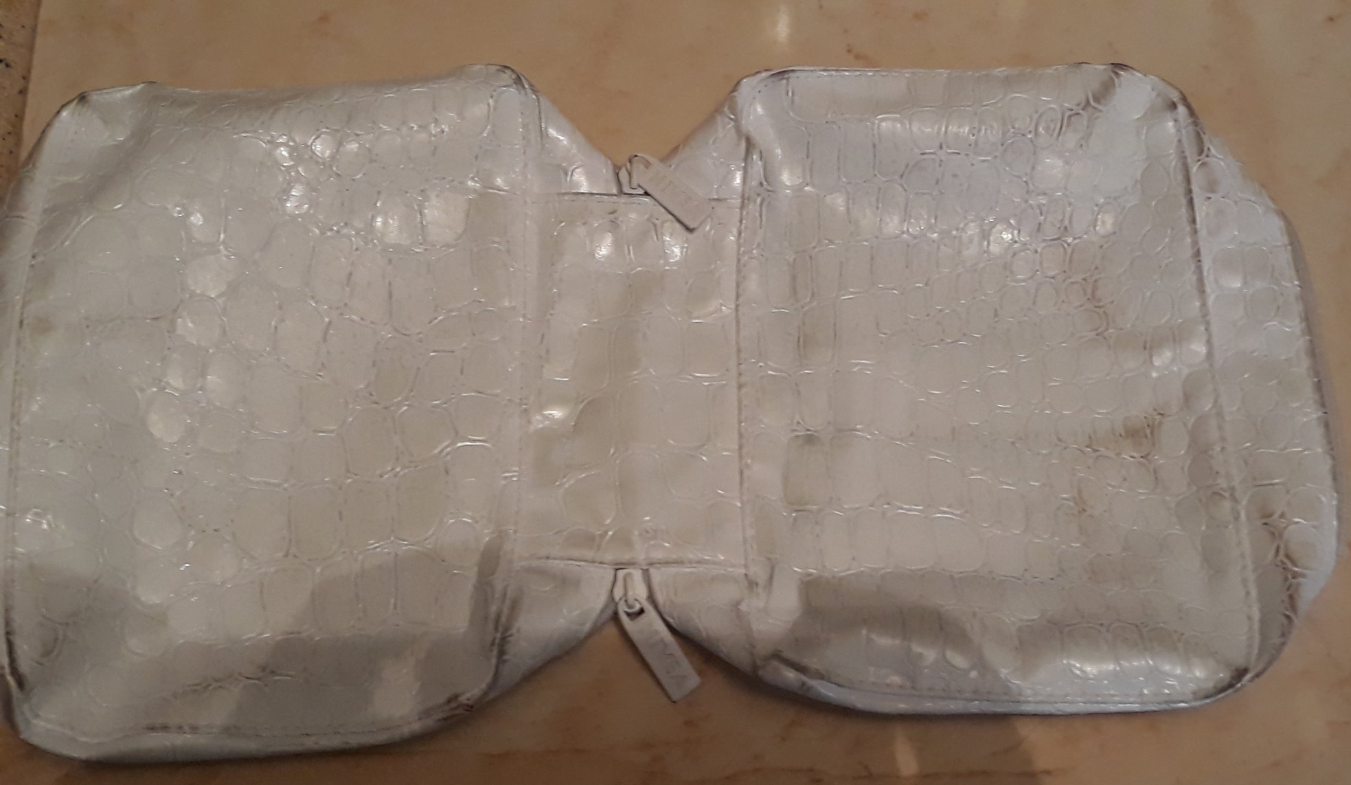 Аз да питам как мога да почистя този несесер? Захаби се от новата ми чанта. Отвътре е някякъв мъхест черен плат. Чистих с магическа гъба, с Циф, с Доместос и после несесера седя 2 часа накиснат в перилен препарат. На снимките е вече изпран Joy