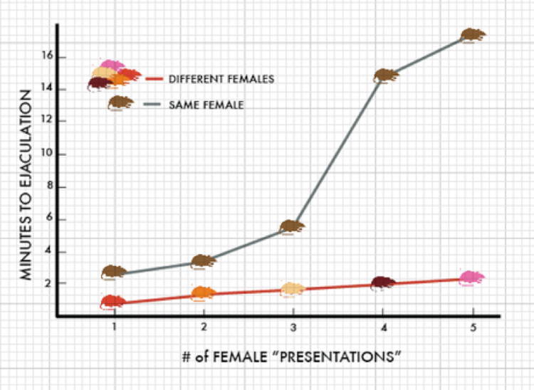 Братане, от таз диаграма разбирам, че ако един мъж е само с една жена, то тогава еякулира с времето по-бавно. Тоест му трябва повече време да свърши.