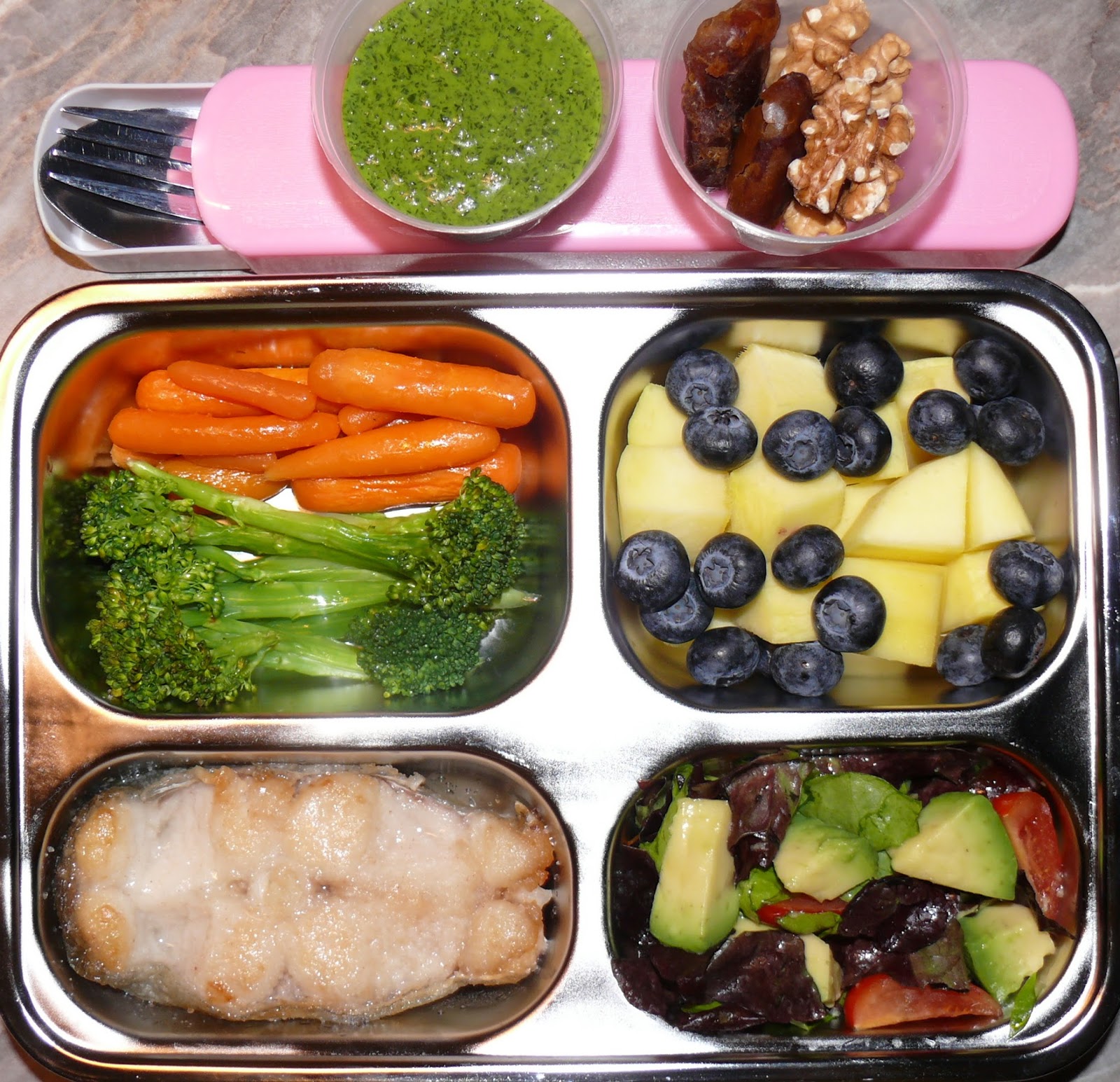 При нас днес няма голямо разнообразие - сандвич с пастет от риба тон, чери домати, праскова, грозде и едно барче с годжи бери.