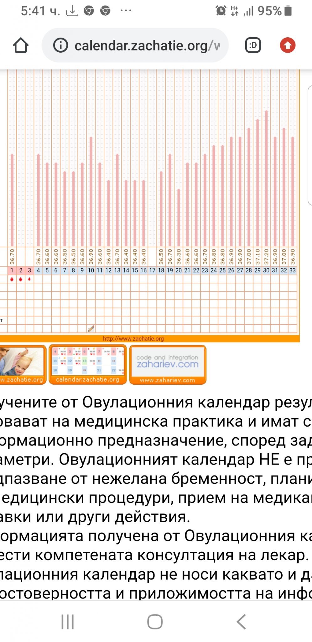 Здравей, Денис! След първи опит инвитро, завършил с един мисед и 2 отрицателни ЗЕТ, започнах да меря и аз БТ, за да се ориентирам накъде вървят нещата. Септември беше първия ЗЕТ на естествен цикъл, с нормални нива на хормоните. След неуспеха последва 1 ановулаторен цикъл с дължина 24 дена (нормално при мен е 28-30 дена), и ноември направихме втория ЗЕТ, който до последно беше под въпрос заради ниски нива на хормоните. След предизвикана с овитрел овулация и прогестерон БТ се беше качила до 37,2-37,4, но след като започна да пада след 7я ден. ми беше ясно че пак ще е неуспешен опита. Това е графиката ми до момента за този цикъл, притеснява ме, че БТ много играе през ФФ.