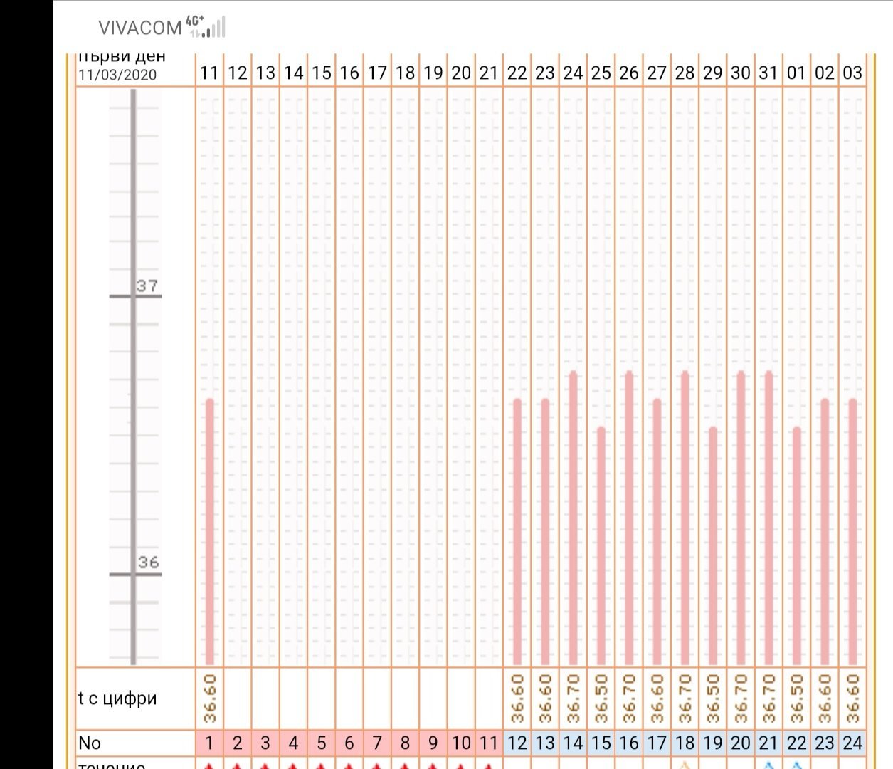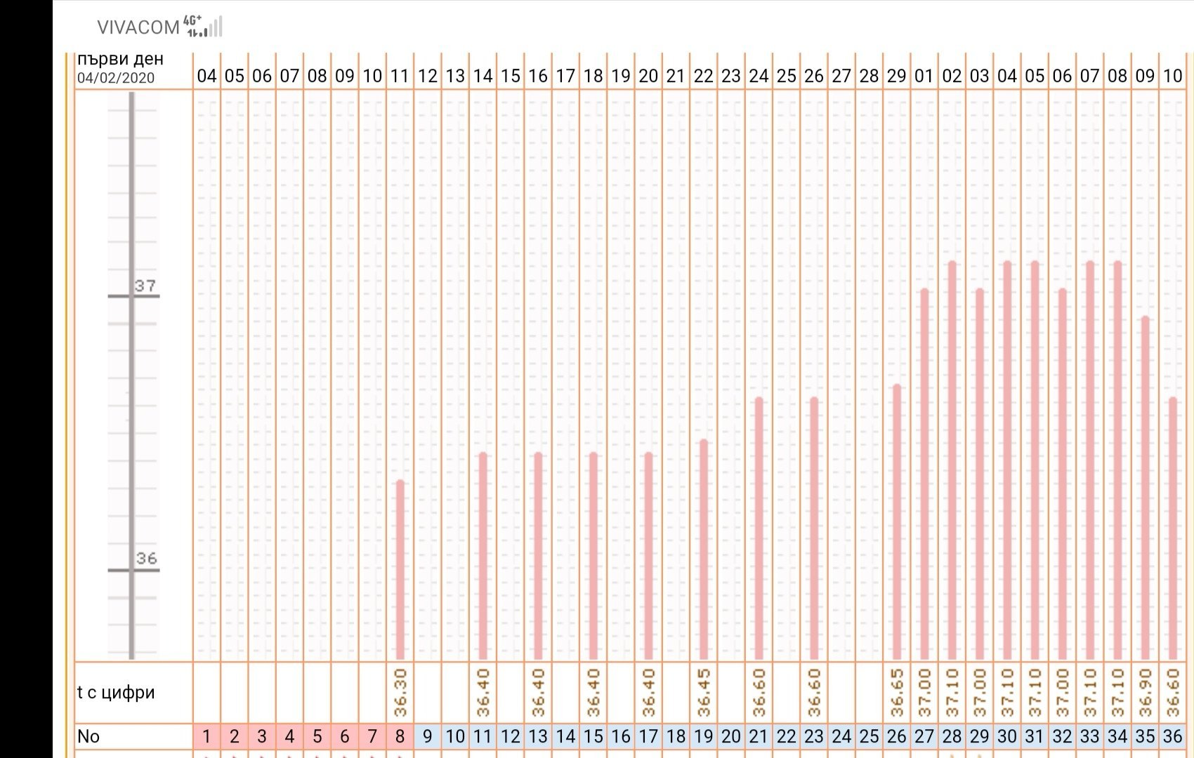 Ако БТ се задържи висока, О. може да е била на 19/20 ден от МЦ. ( 36.7-36.9 )