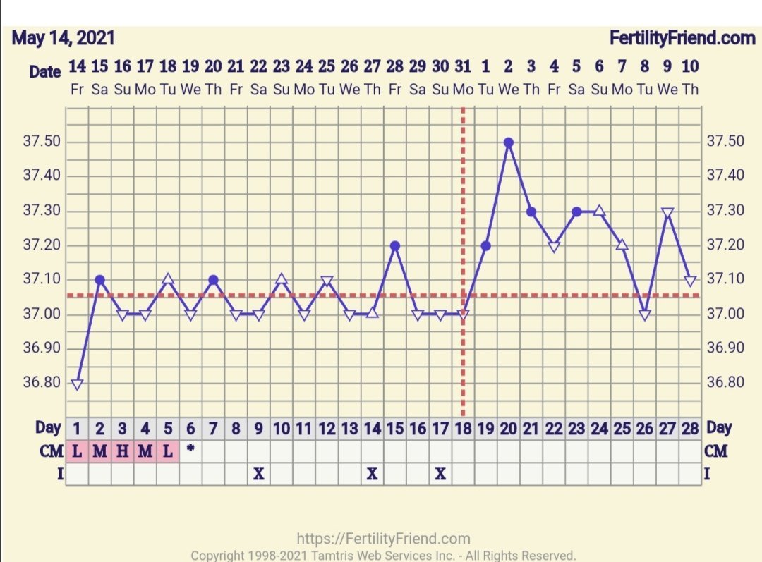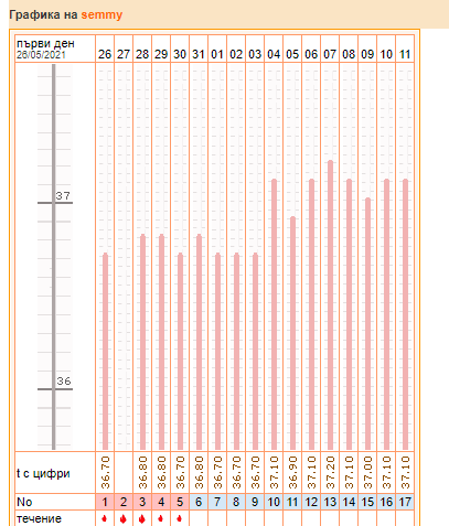 Здравейте мили дами, бихте ли ми помогнали с графиката на БТ. Този месец ми се струва доста странна диаграмата на БТ. Мерена е в устата под езика между 8:30/9ч.