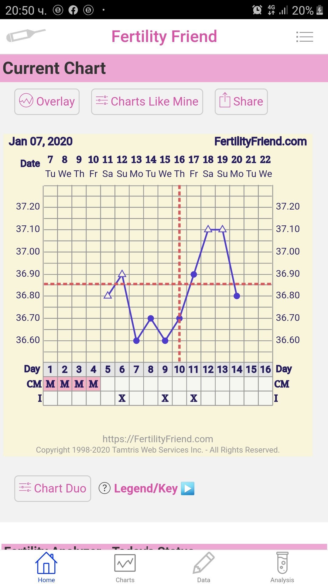 низходящ към възходящ ред, като погледна моята и все едно е влакче в лунапарк Grinning По принцип имам положителен тест за О на 12 ден, този месец имах на 11 след стимулация с кломифен цитрат,за съжаление пропадна инсеминацията и опитите,защото пипнах конюктивит 5 дни преди инсето и отложихме. Иначе съм с намалена функция на ЩЖ и еутироксин 50/75, тези дни ще пускам контролни,че не съм го изследвала от ноември,тогава беше 2.11, но чаках само 30 мин преди храна и кафе,сега изчаквам 1:30 ч. И би трябвало да сме смъкнали под 2. Извинявайте за дългия пост,ама знам,че заради ЩЖ температурата е по-ниска, но пък графиката ми изглежда странно.Забравих да кажа,че пия дуфастон от 14-28 ден на МЦ.
