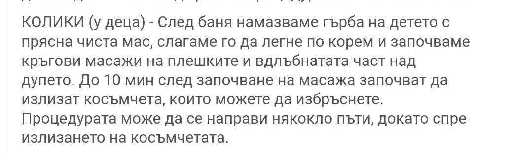 Вчера Изабела беше супер спокойна,даже заспа някъде към 10:30 и спа чак до 15ч,като към 12:30 яде докато спеше.Спокойствието беше до 18ч.После започнаха коликите пак,но много леки и само мрънкаше.Аз мислих да не й правим пак масажа,тъй като предната вечер като че ли бяха спрели да излизат трънчета.Но мъжът ми вика айде пак и в крайна сметка го направихме.От кръста и лявата плешка излизаха само бели,но от дясната плешка,като започнах да масажира и изведнъж излезнаха 5-6 черни,които не искаха да излезнат сами.Стояха като забити в нея.Тогава ги махнахме с пинсета.Малката пак си спеше.